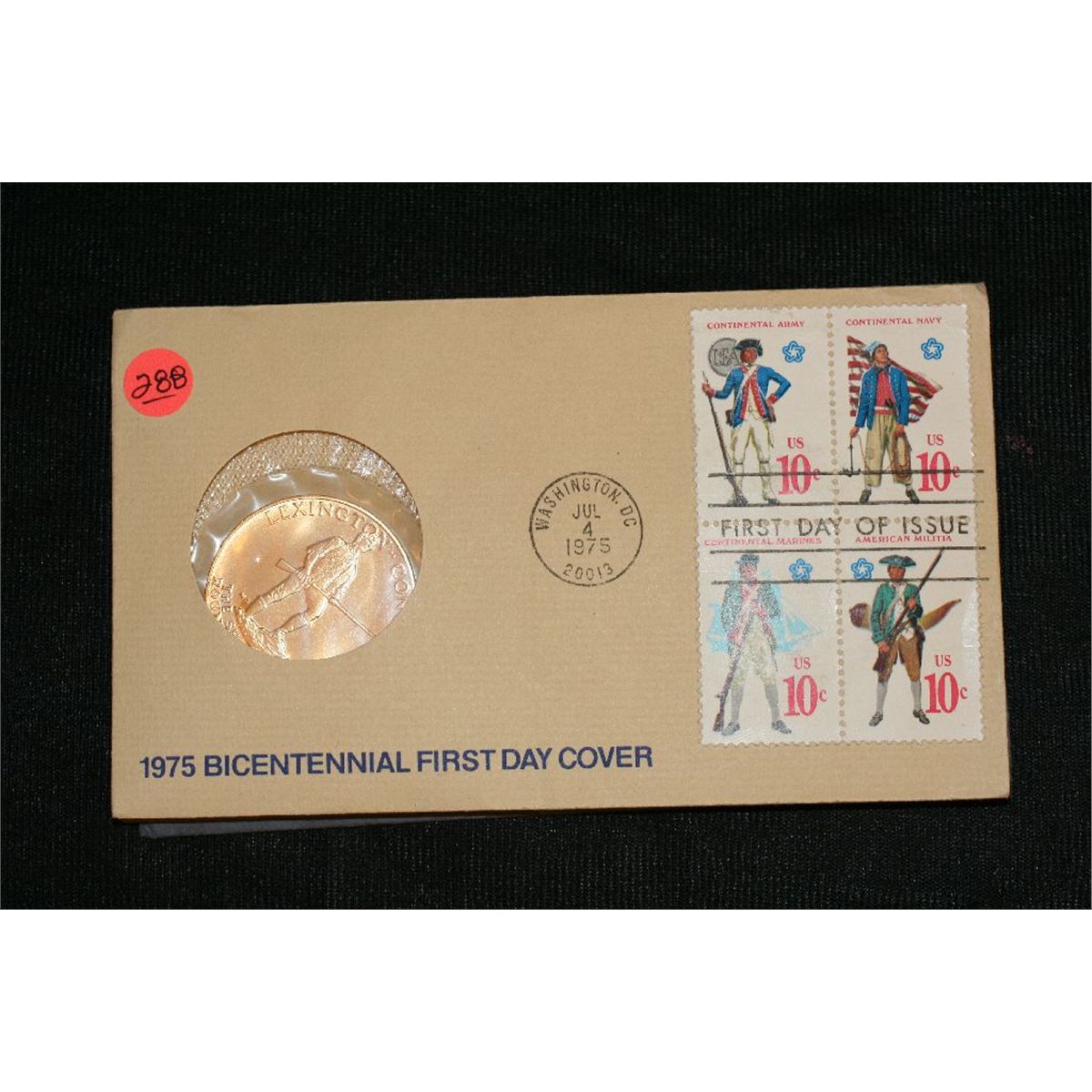 1975 American Revolution Bicentennial Commemorative Medal & First Day Issue Stamps