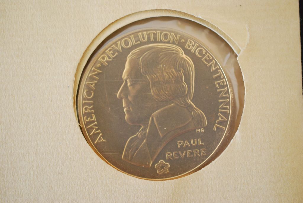 1975 American Revolution Bicentennial "Paul Revere" Commerative First Day Cover Medal With First Day Issue Postal Stamps; EST. $3-5