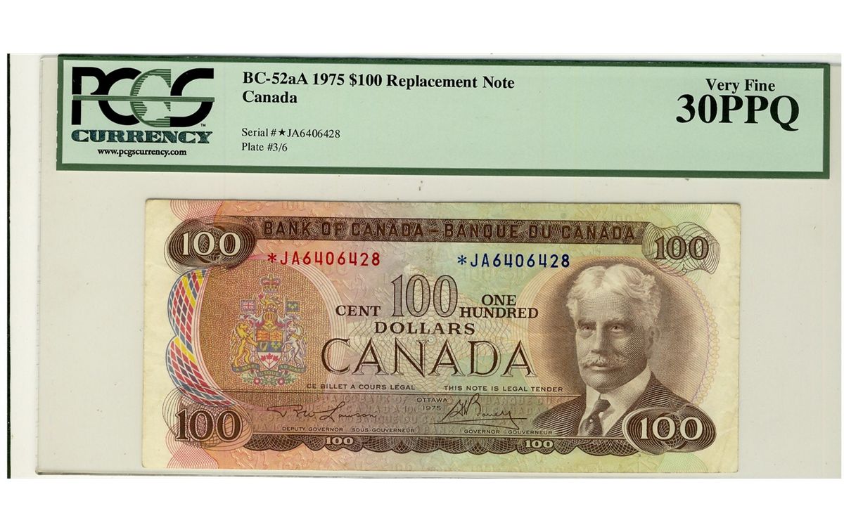 1975 Bank of Canada; 100 Dollars, BC-52aA #*JA6406428 PCGS VF30PPQ.