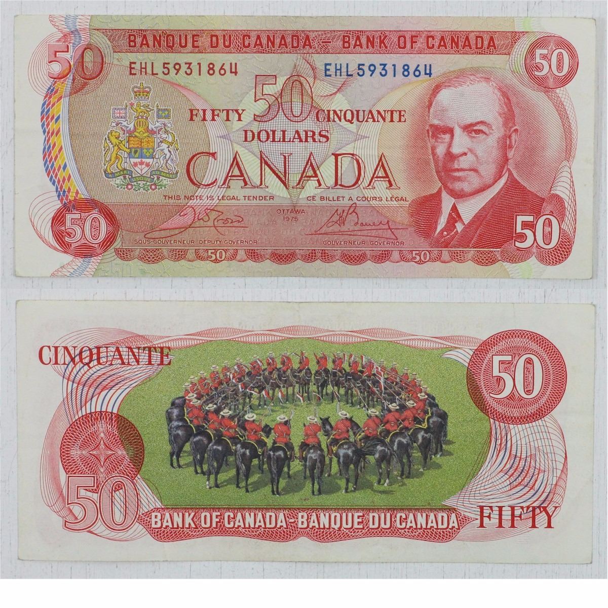 1975 Canada $50 Note with the RCMP on reverse. Buyers Premium will be added on all items as per our terms of sale. We accept Paypal, Credit Card, E-Transfer Payments, Cheque or Money Orders (there is an additional 3% fee for using Paypal or Credit Card). All invoices will be emailed immediately following the auction, please contact us if you would like to pay by credit card or receive a new revised lower total for mailing in payment or sending an e-transfer (3% discount). All Items Are Sold "AS IS", no returns