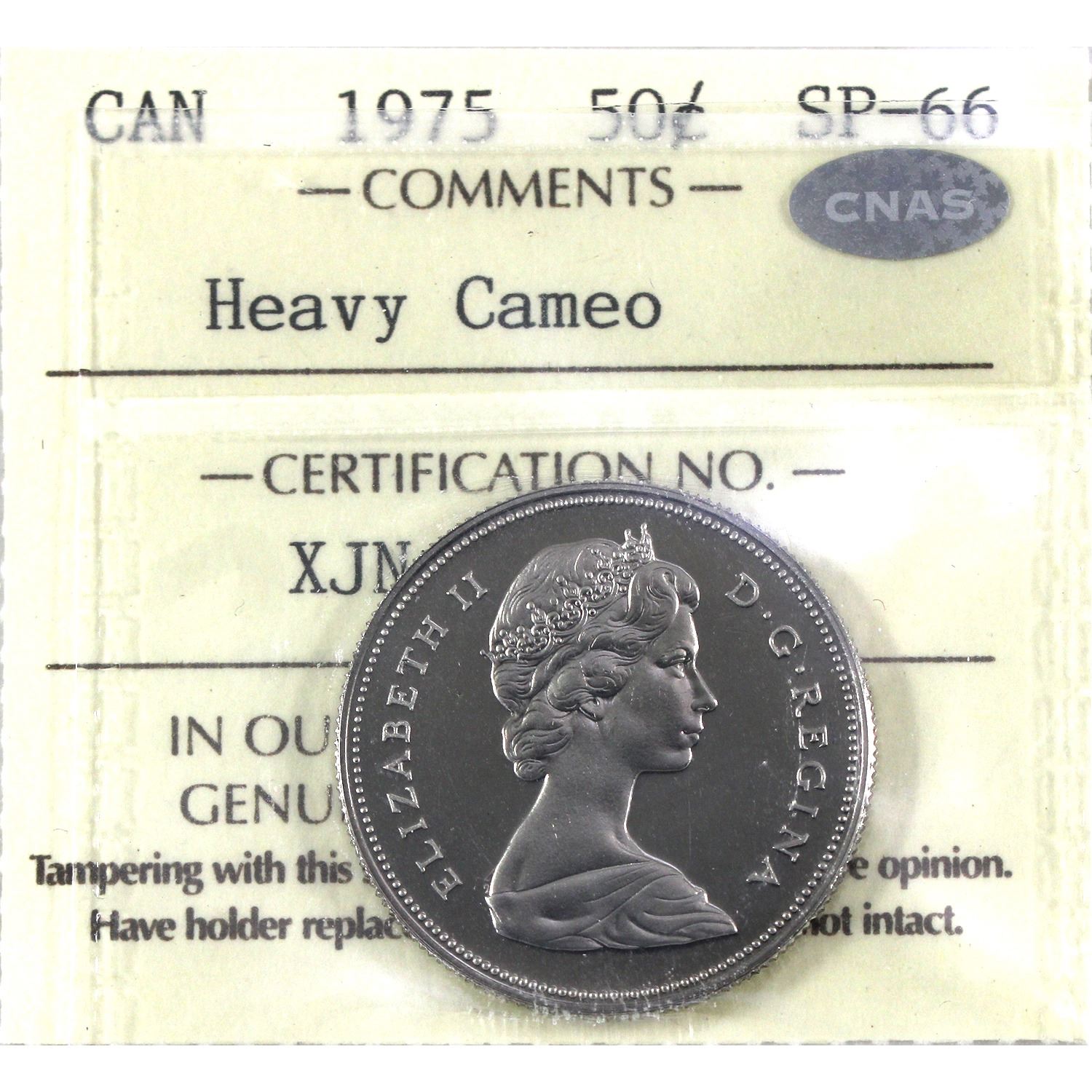 1975 Canada 50-cent ICCS SP66 Heavy Cameo (CNAS sticker on holder)