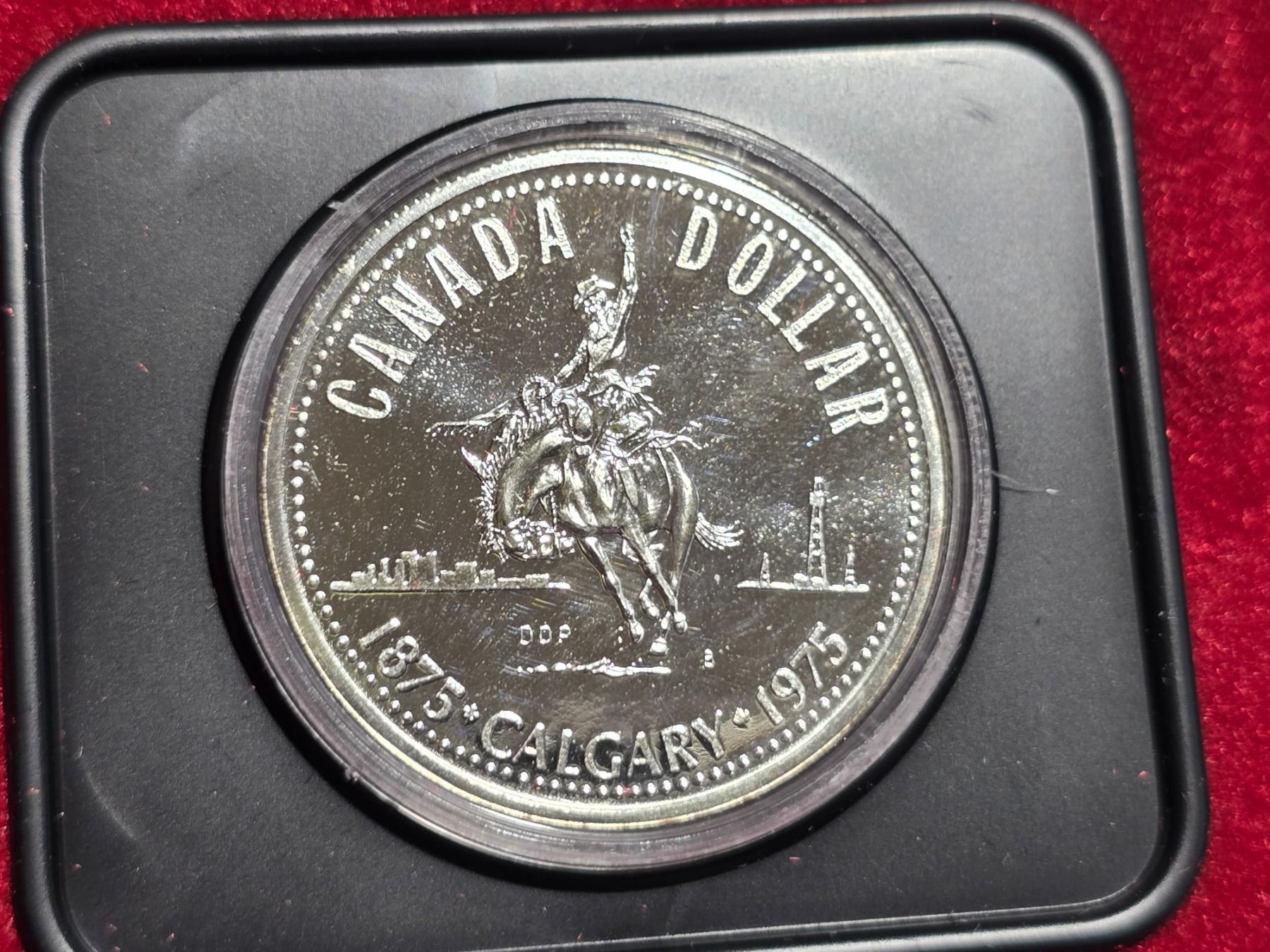 1975 Canadian "Calgary" silver dollar, in clam shell case