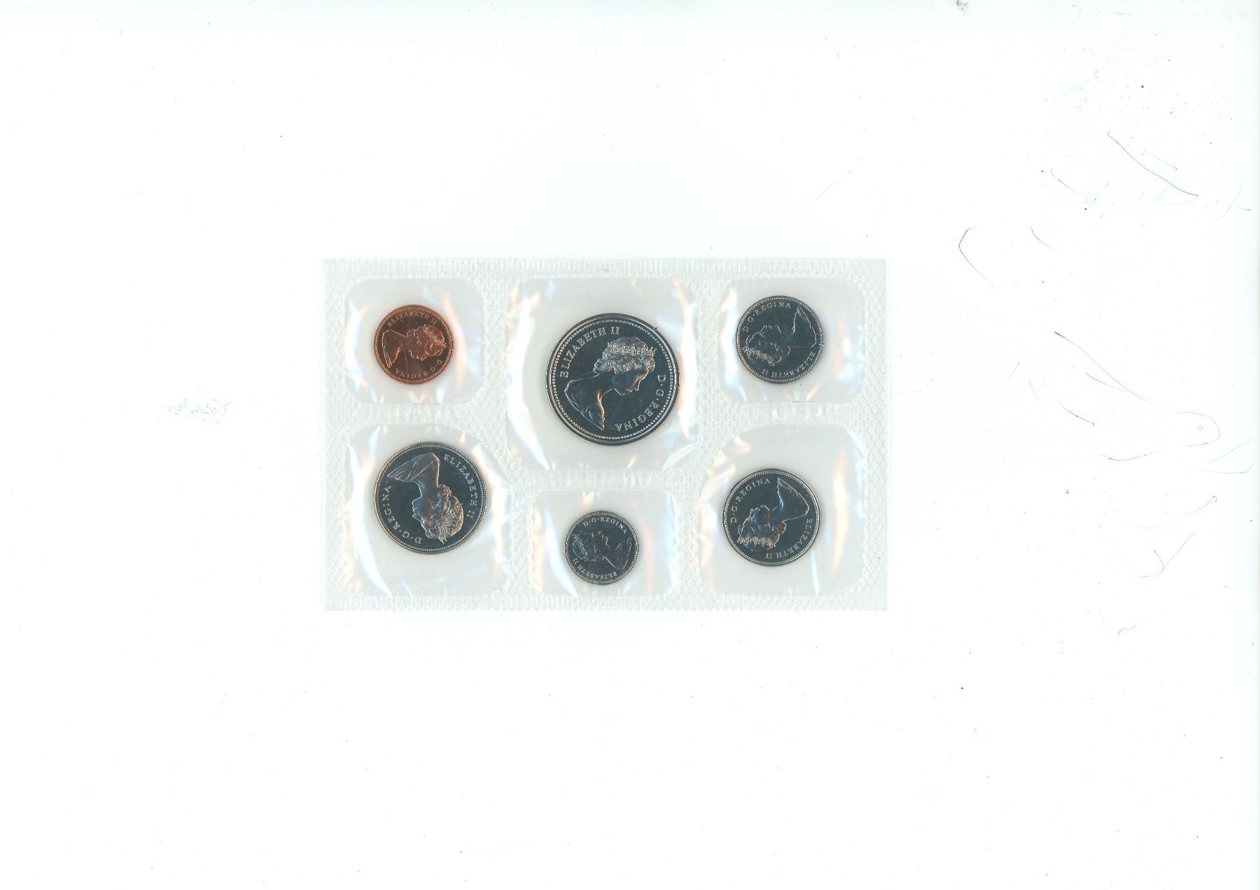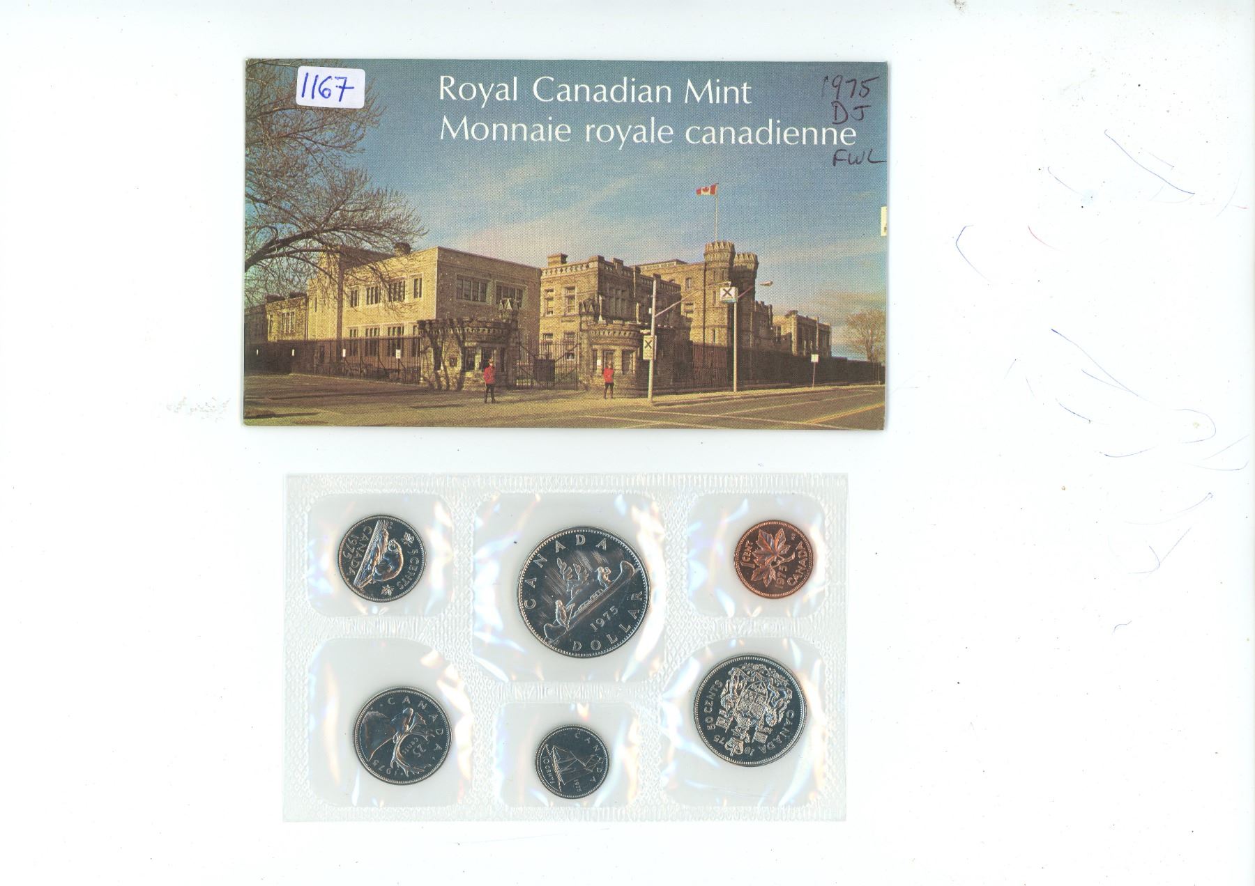 1975 Canadian Proof Like Set. 6-coin set with the dollar having Detached Jewels & Full Water Lines in front of the canoe.