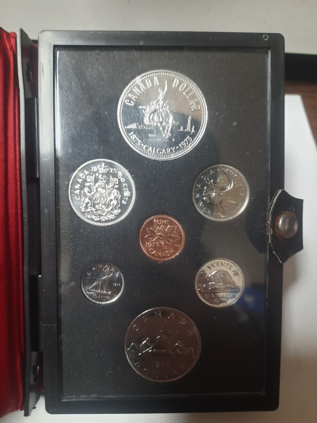 1975 Double Dollar Specimen Set. 7-coin set includes a Silver Dollar that commemorates the 100th Anniversary of Calgary.
