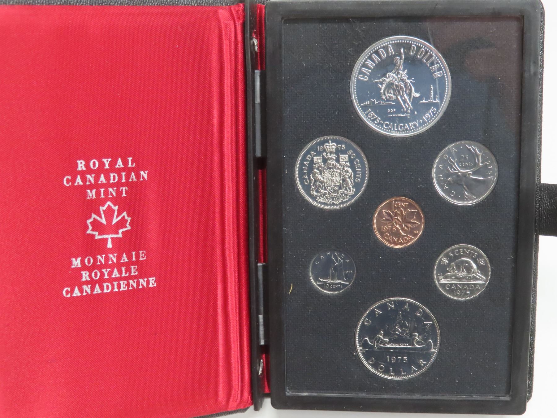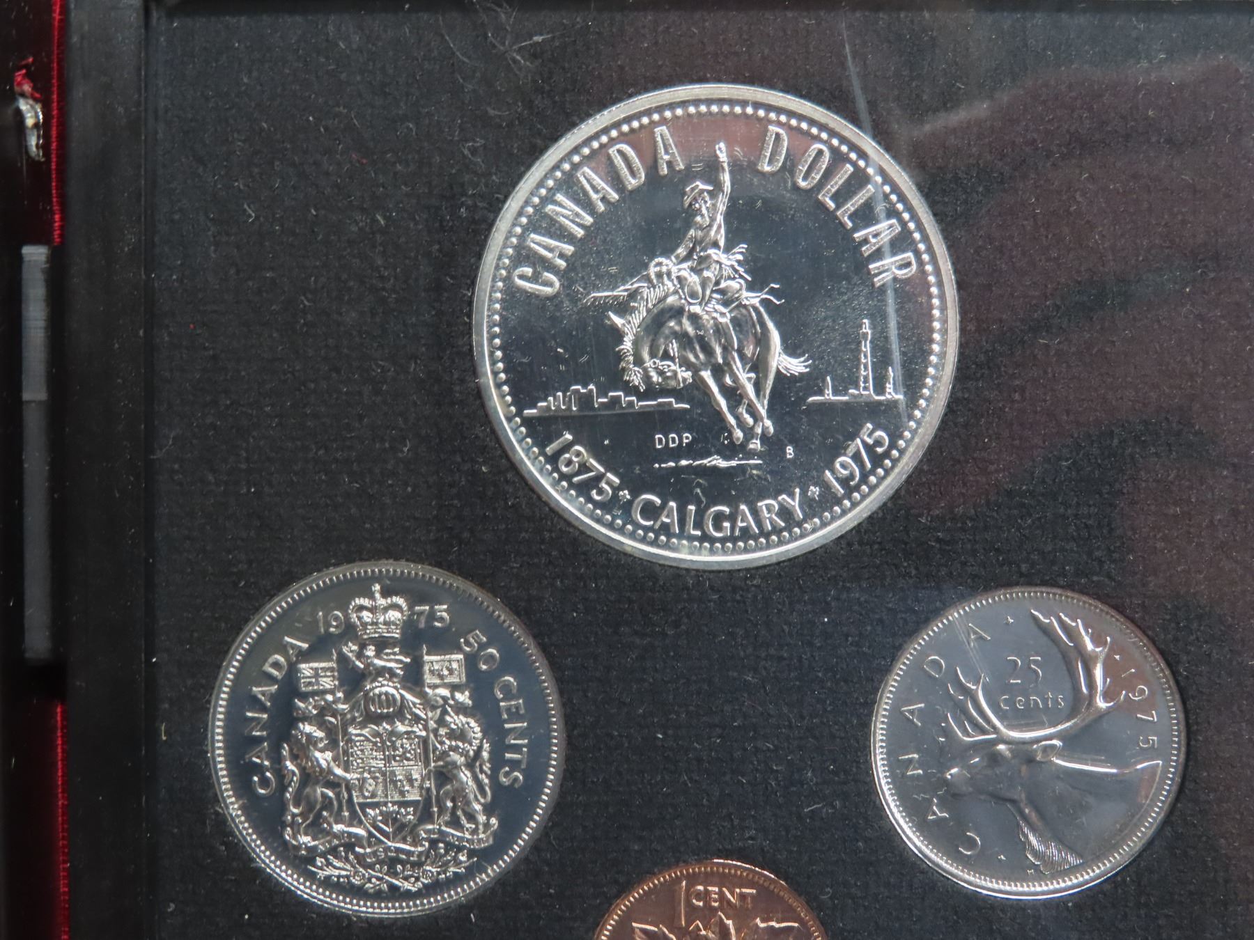 1975 Double Dollar Specimen Set. Silver Dollar commemorates the Centennial of Calgary. Housed in its original RCM case of issue.
