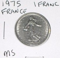1975 FRANCE 1 FRANC *RARE MS HIGH GRADE!! COIN CAME OUT OF SAFE!! ***Coin, Currency & All Items Listed in this auction - Grades, Conditions and Values are not Safe Deposit Coins LLC Responsibilty. Grades, Condition and Values are determined by Consigner(s) & Buyers ONLY