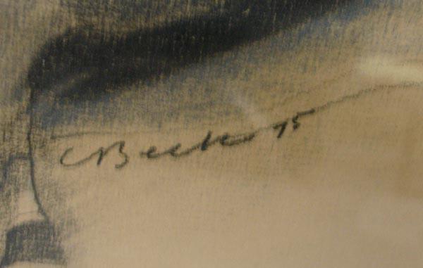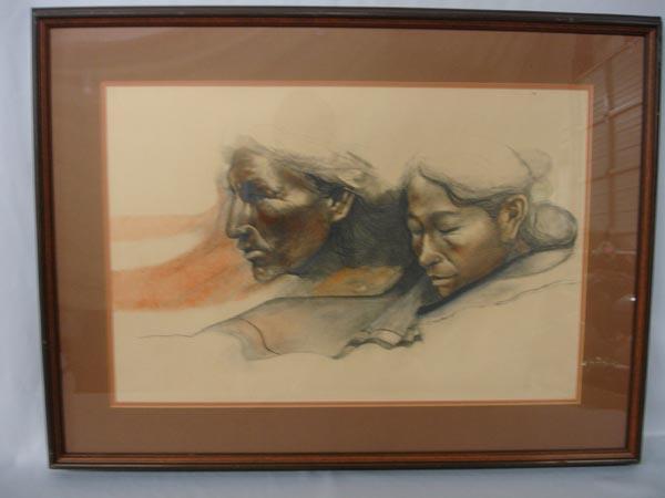 Framed Original Navajo Painting by Clifford Beck. Framed in wood, under glass and double matted. Visual measures 24''x14''. Frame has a few places with finish worn off. SHI $100.