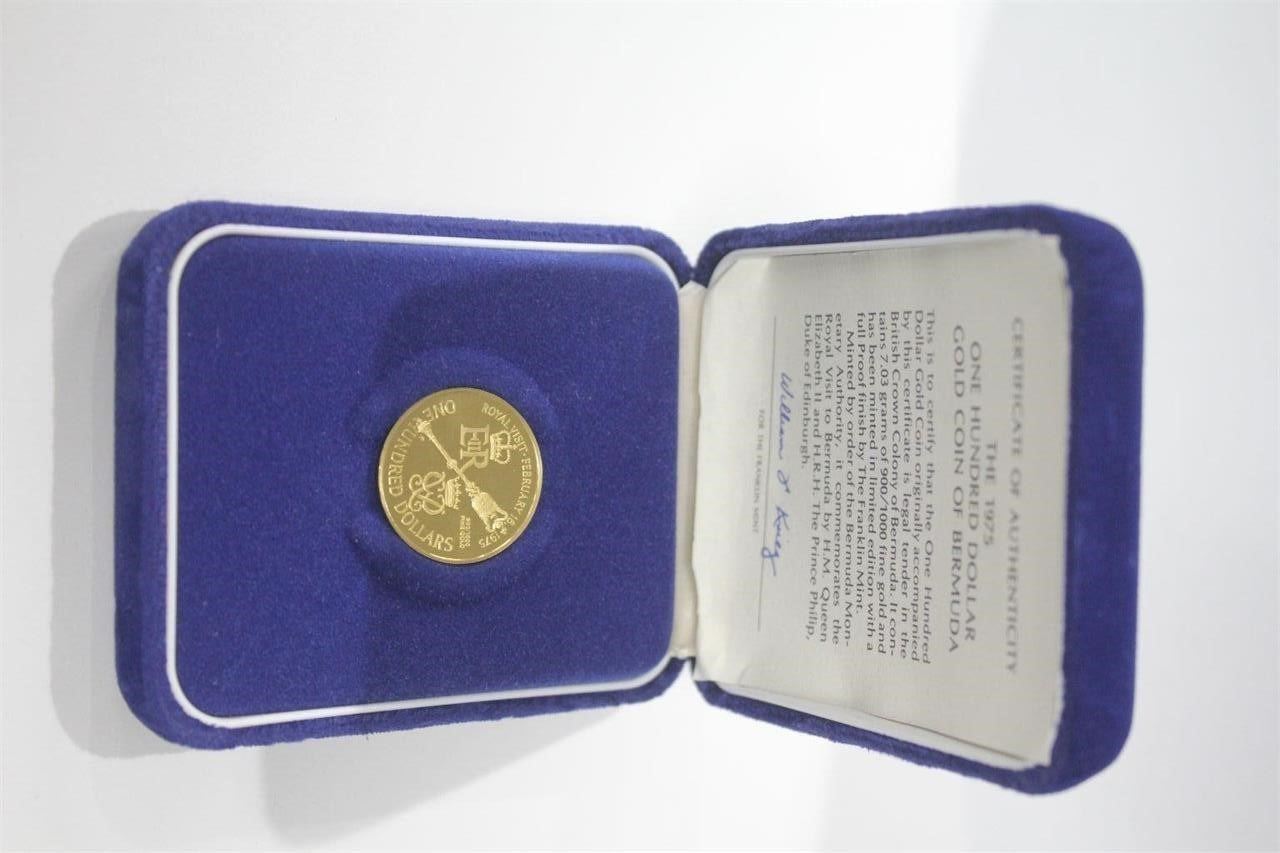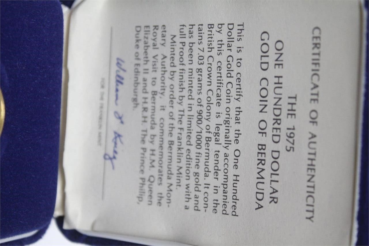 This coin commemorates the royal visit of February 16, 1975. This coin is 900/1000. This is complete with COA.