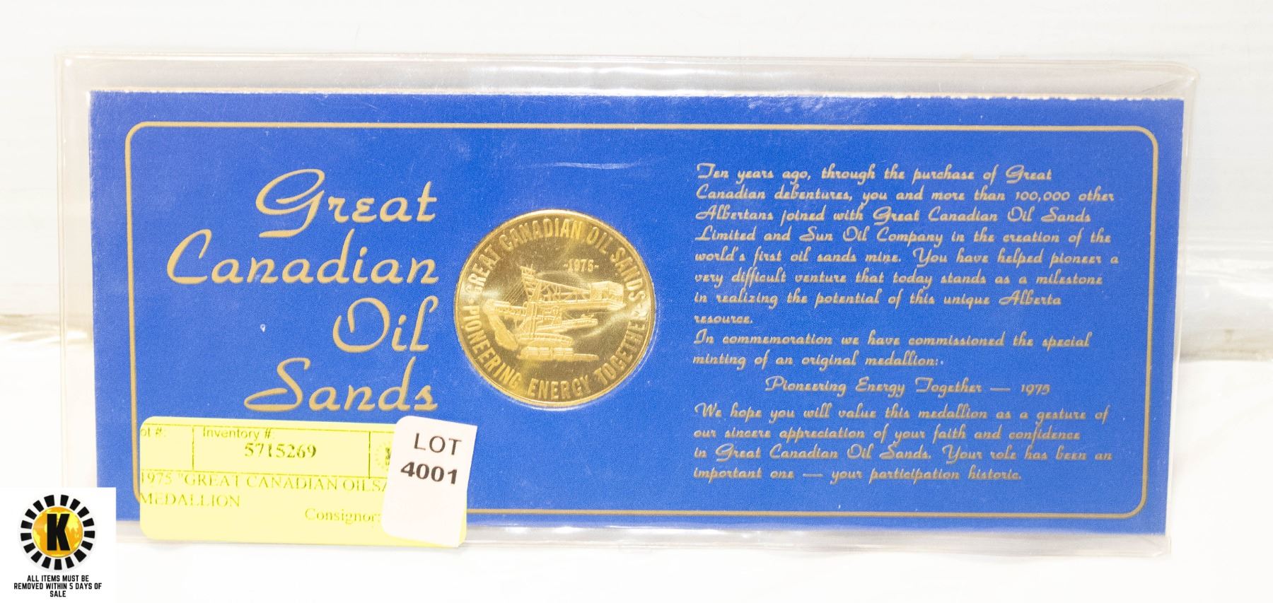1975 "GREAT CANADIAN OILSANDS" MEDALLION