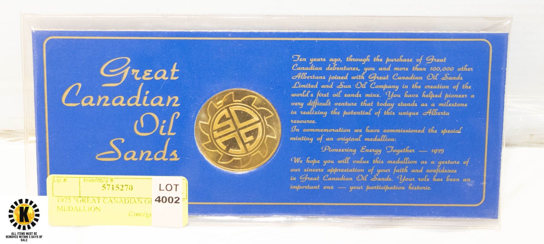 1975 "GREAT CANADIAN OILSANDS" MEDALLION