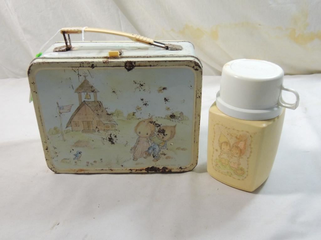 VINTAGE LUNCHBOX, DECORATIVE COLLECTIBLE METAL LUNCHBOX, THERMOS AS SHOWN SEE PHOTO FOR MORE DETAILS.