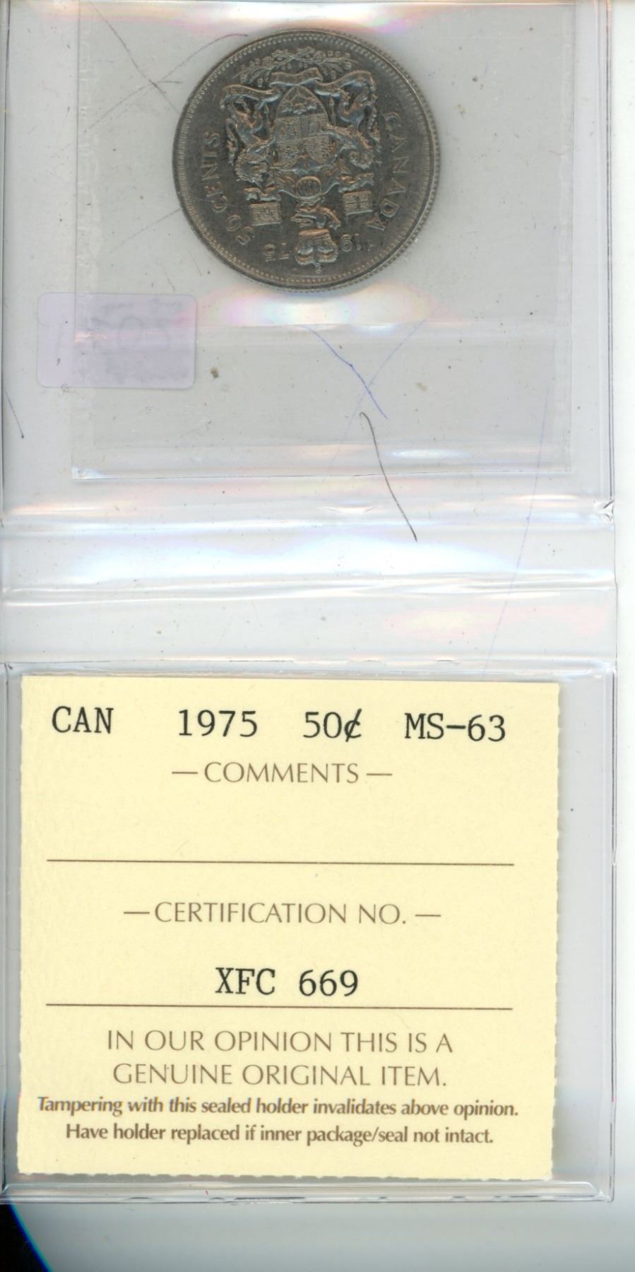 1975 ICCS Graded - Canadian Fifty Cent - MS63