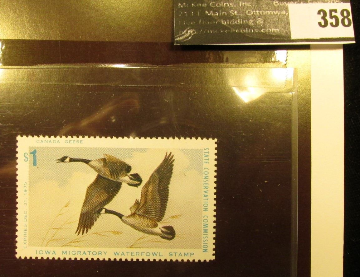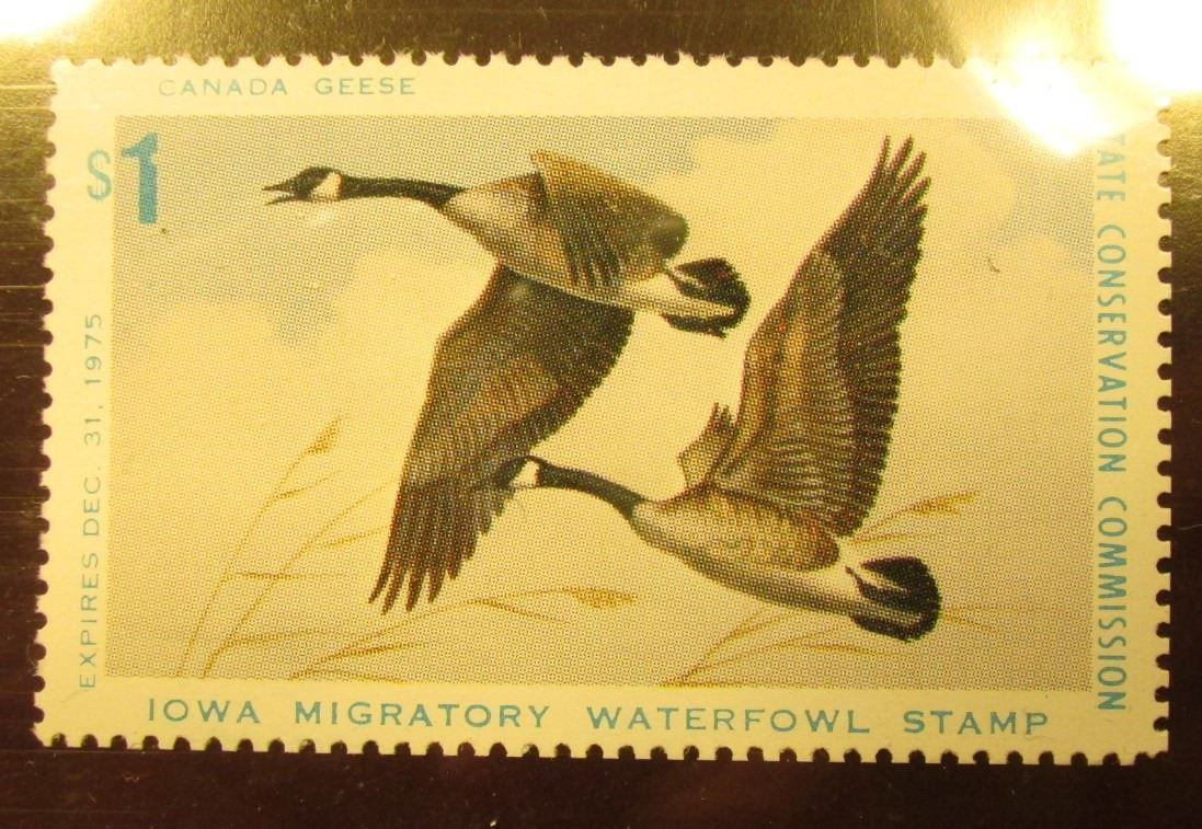 1975 Iowa Migratory Waterfowl Stamp, #IA4, XF, NH, perfs on four sides.