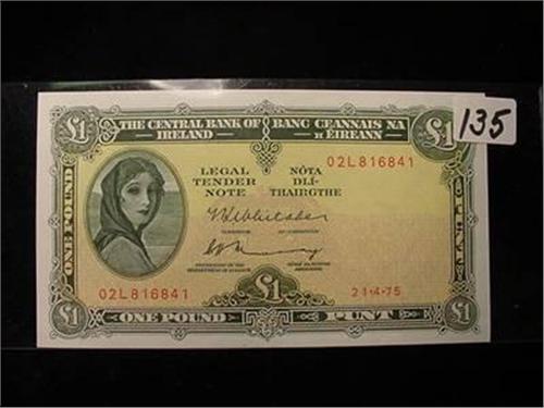 1975 Ireland 1 Pound Bank Note - Mint Uncirculated Condition