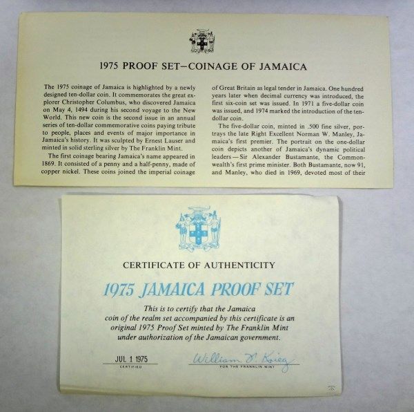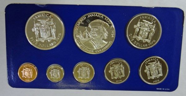 1975 JAMAICA EIGHT PIECE PROOF SET, BEAUTIFUL COINS