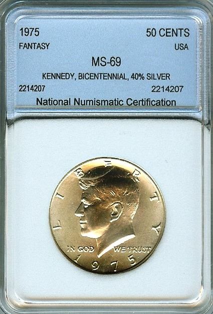 1975 KENNEDY FANTASY 50 CENTS - BICENTENNIAL - 40%SILVER NNC MS69