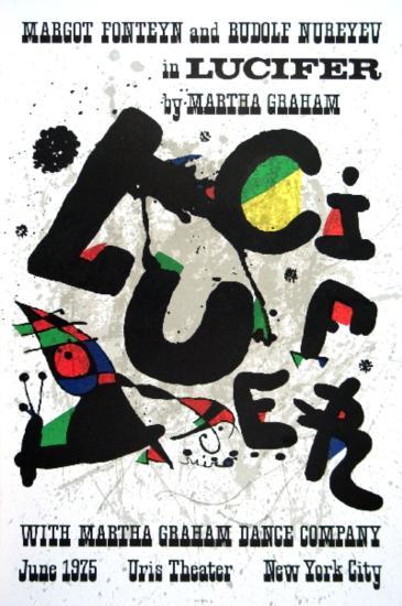 Poster produced by Miro for the presentation of the ballet Lucifer by the Martha Graham dance Company, at the Uris Theater, New York (June 1975).