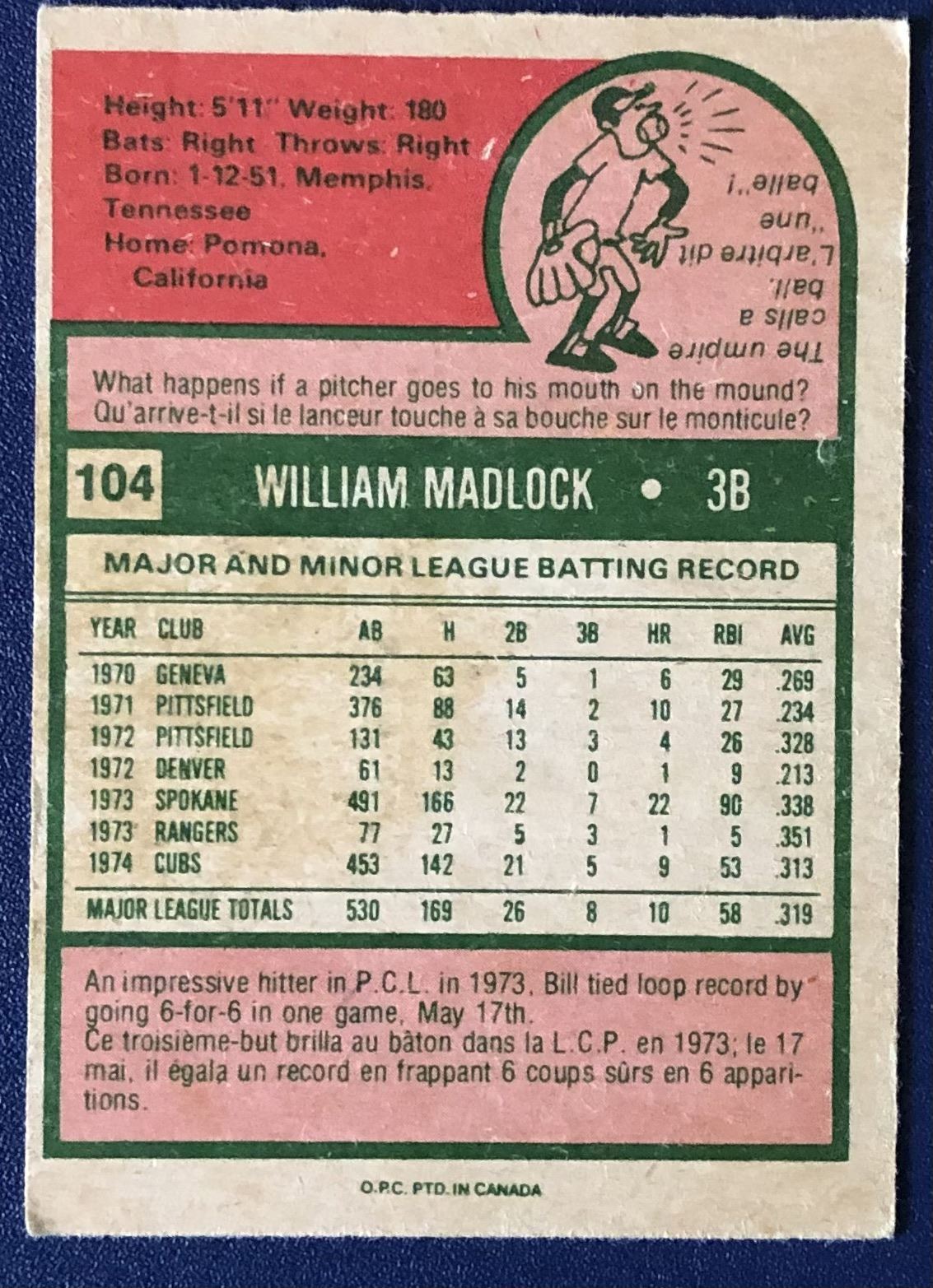 Card #104 vintage, MLB, baseball, rookie, OPC