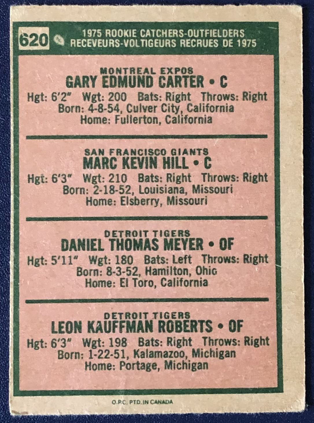 Card #620 vintage, MLB, baseball, rookie, OPC, hall of fame
