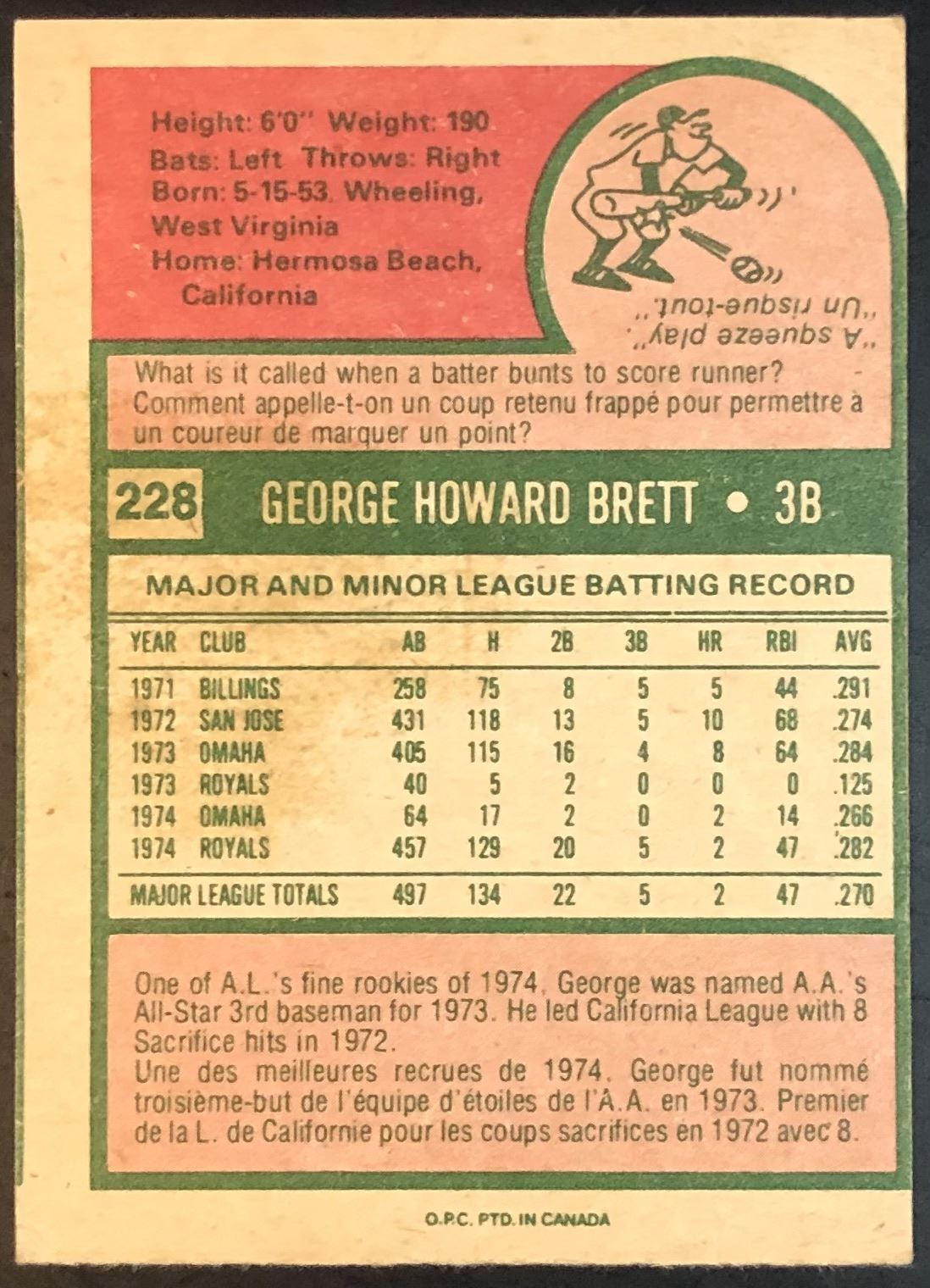 Card #228 MLB, baseball, vintage, OPC, hall of fame