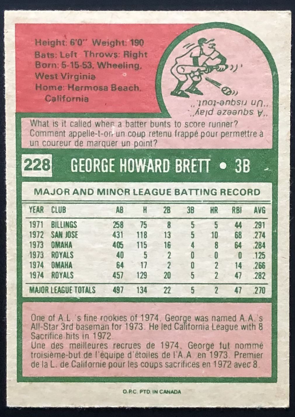 Card #228 OPC, vintage, MLB, baseball, hall of fame, rookie