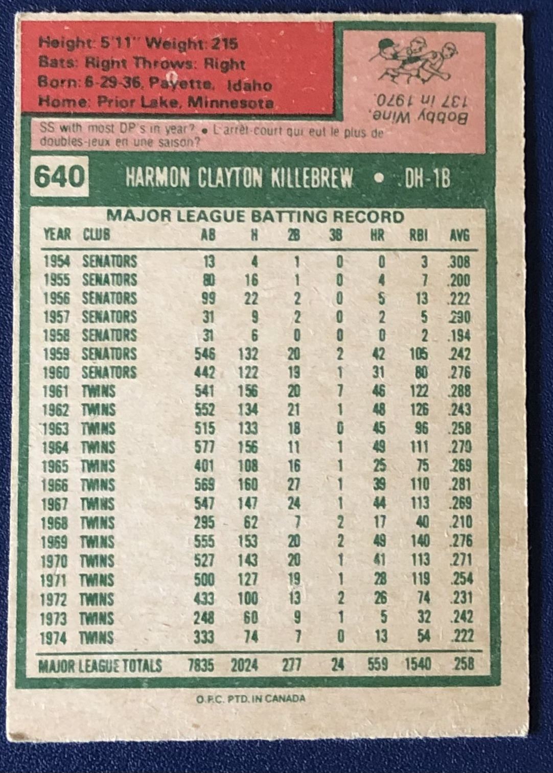 Card #640 vintage, MLB, baseball, hall of fame, OPC