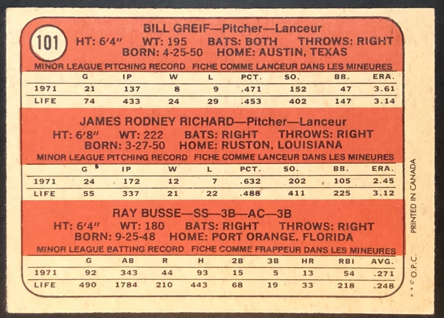 Card #101 OPC, vintage, MLB, baseball, rookie