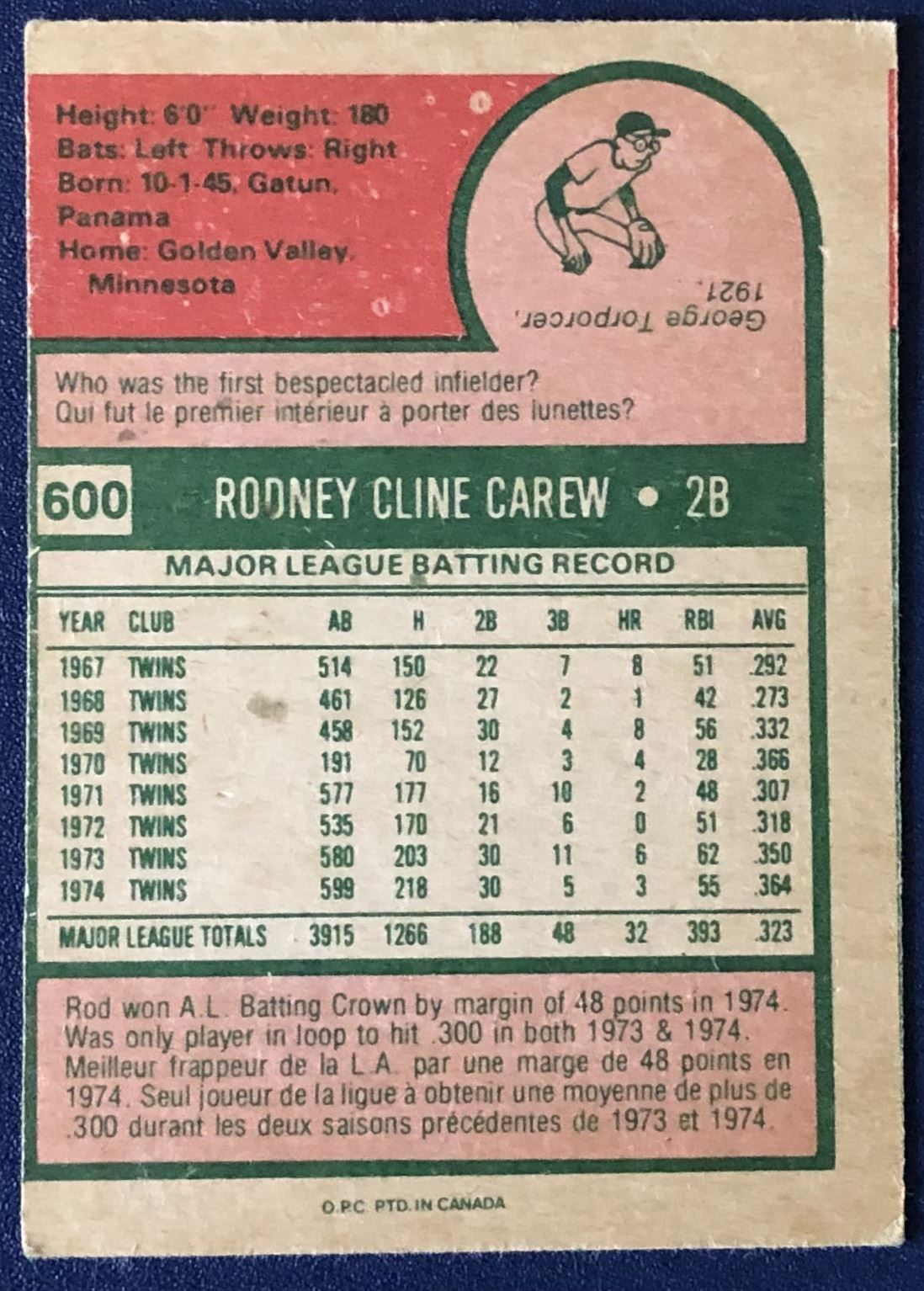 Card #600 vintage, MLB, baseball, hall of fame, OPC
