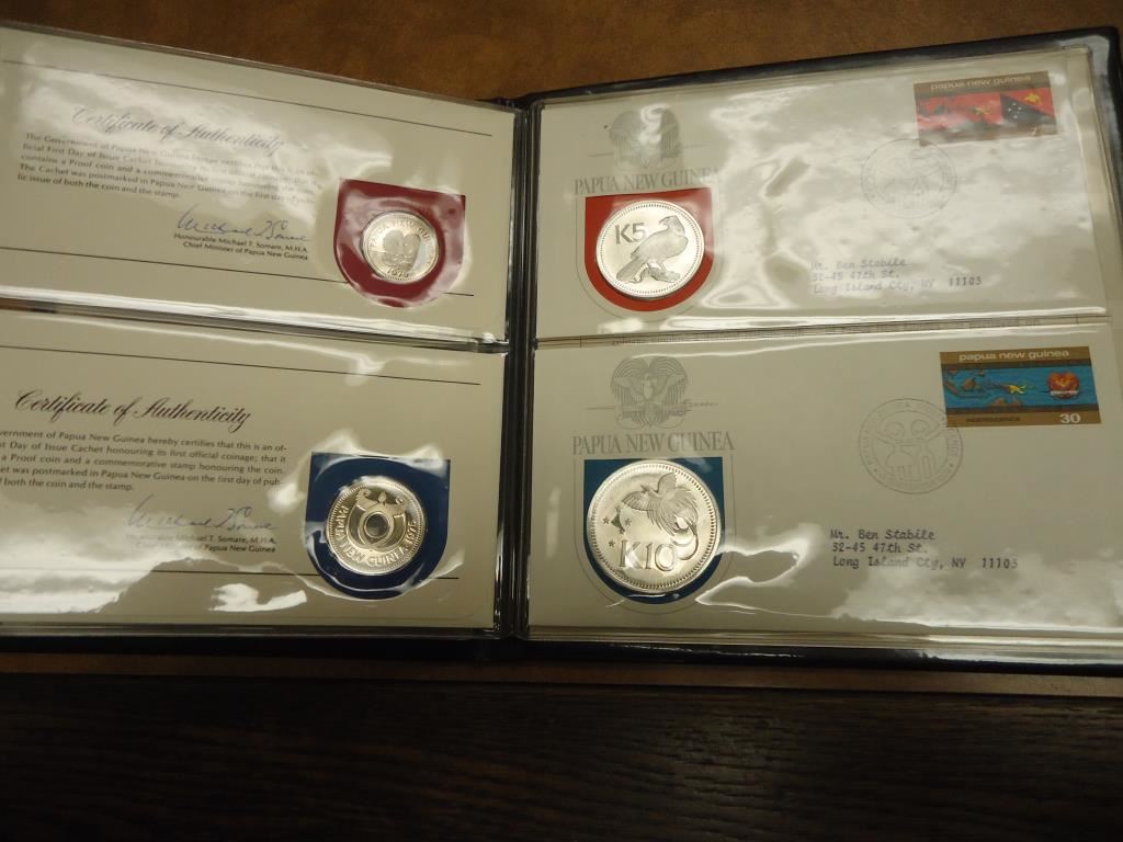 ARE PROOF, 1, 2, 5, 10 & 20 TOEA AND 1, 5 & 10 KINA. 5 AND 10 KINA'S ARE SILVER IN NICE FOLIO. RETAIL IS $75.00+