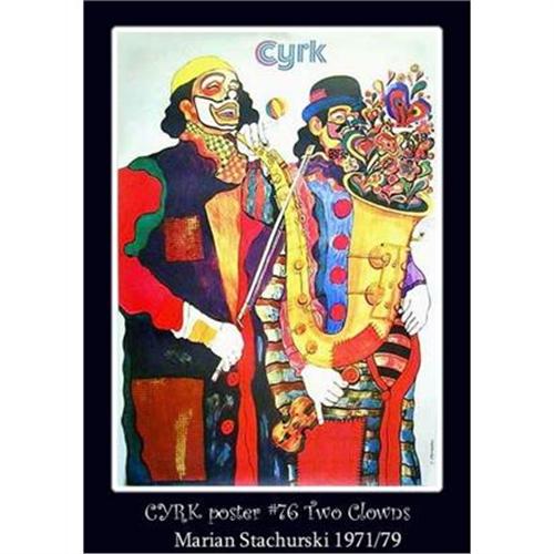 CYRK posters are the quintessential posters of the world-famous Polish School of Posters. It was the Polish School of Posters that changed the face of contemporary graphic design forever and set the standards others follow. This scarce Vintage "TWO CLOWNS " poster was created by Marian Stachurski (1931-1980) - an award-winning graphic artist during the golden era of Polish poster art (post WWII-1989). CYRK posters are part of many museum & private collections. In Europe & Asia, they are exhibited and sold in galleries and auction houses as art. This particular poster is permanently displayed at Museum of Modern Art (NY), Library of Congress (Wash. DC) and Victoria & Albert Museum (London, England. Please note that in some cases photo sizes are automatically reduced, so if you want to see full size or detailed pictures, please email us