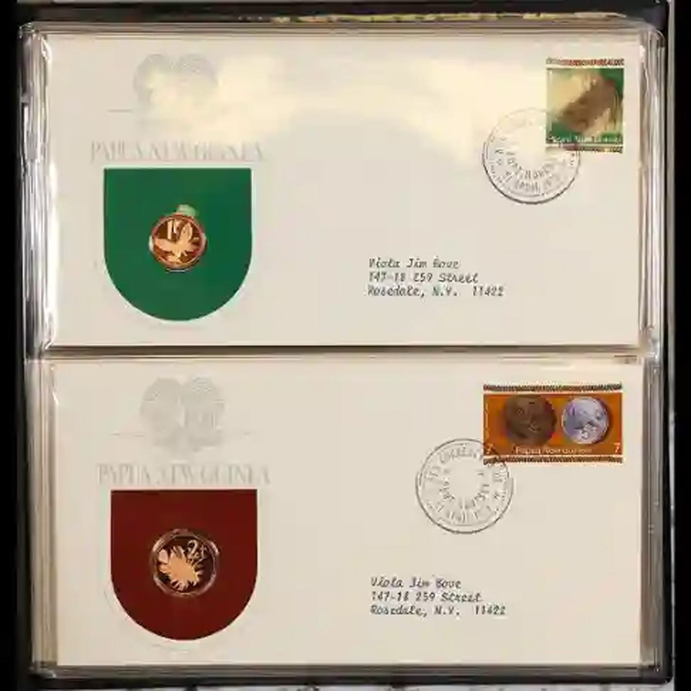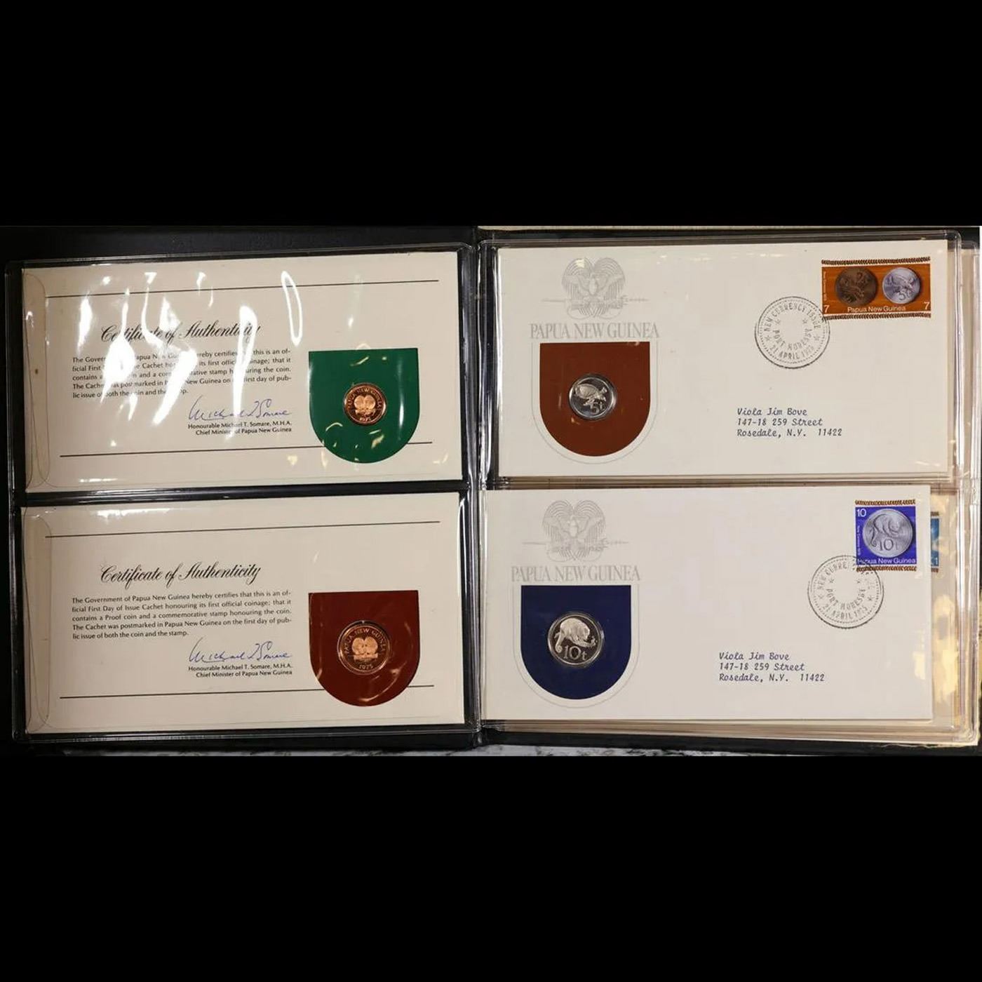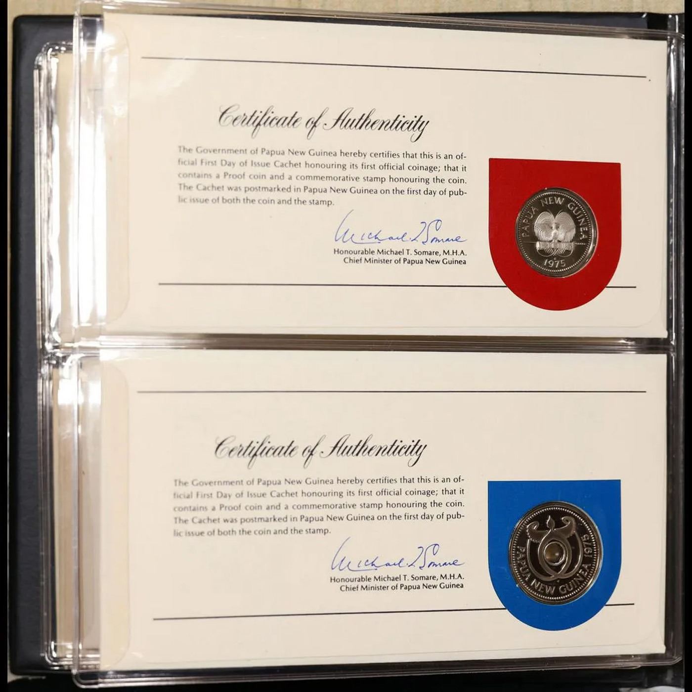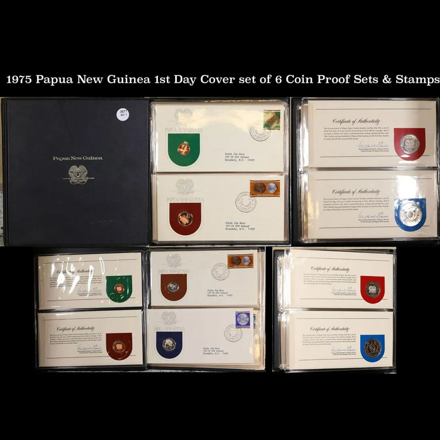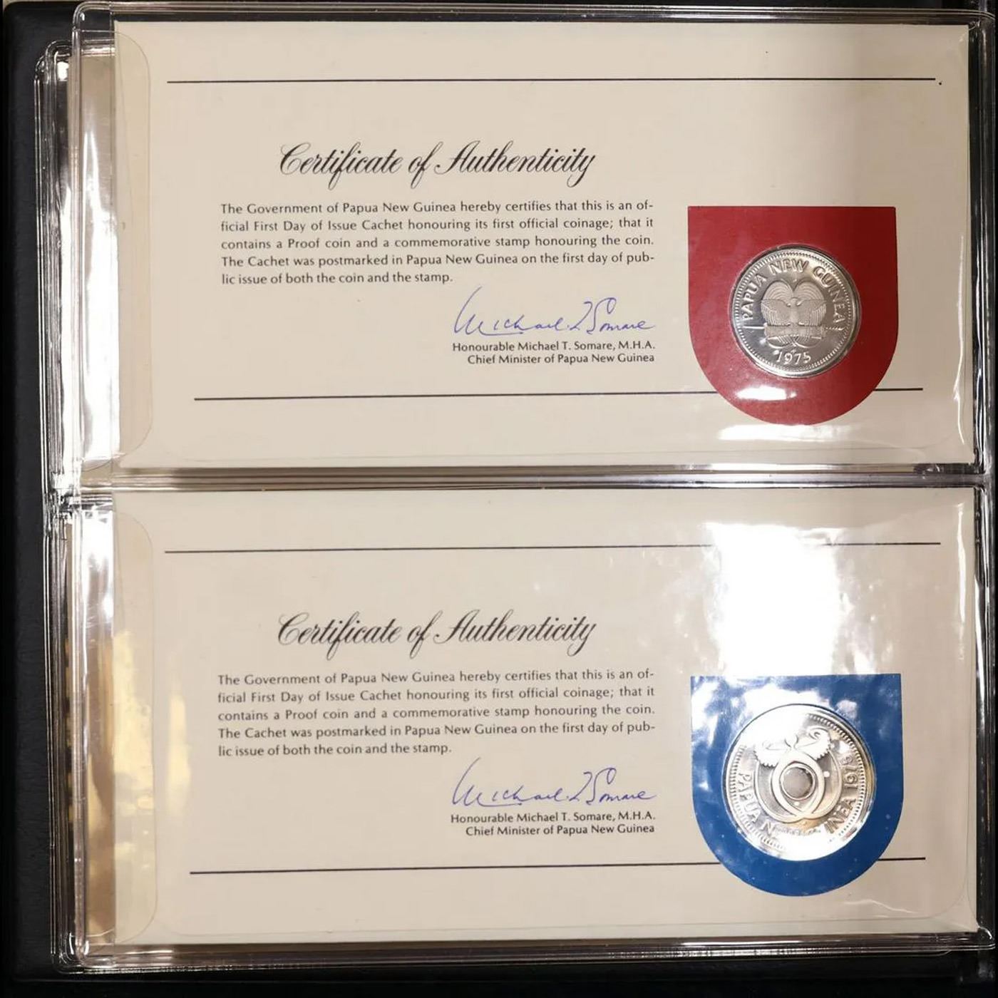1975 Papua New Guinea 1st Day Cover set of 6 Coin Proof Sets & Stamps. Covers in Original Presentation Folder With COA from The Chief Minister of Papua New Guinea - new coinage 1975.