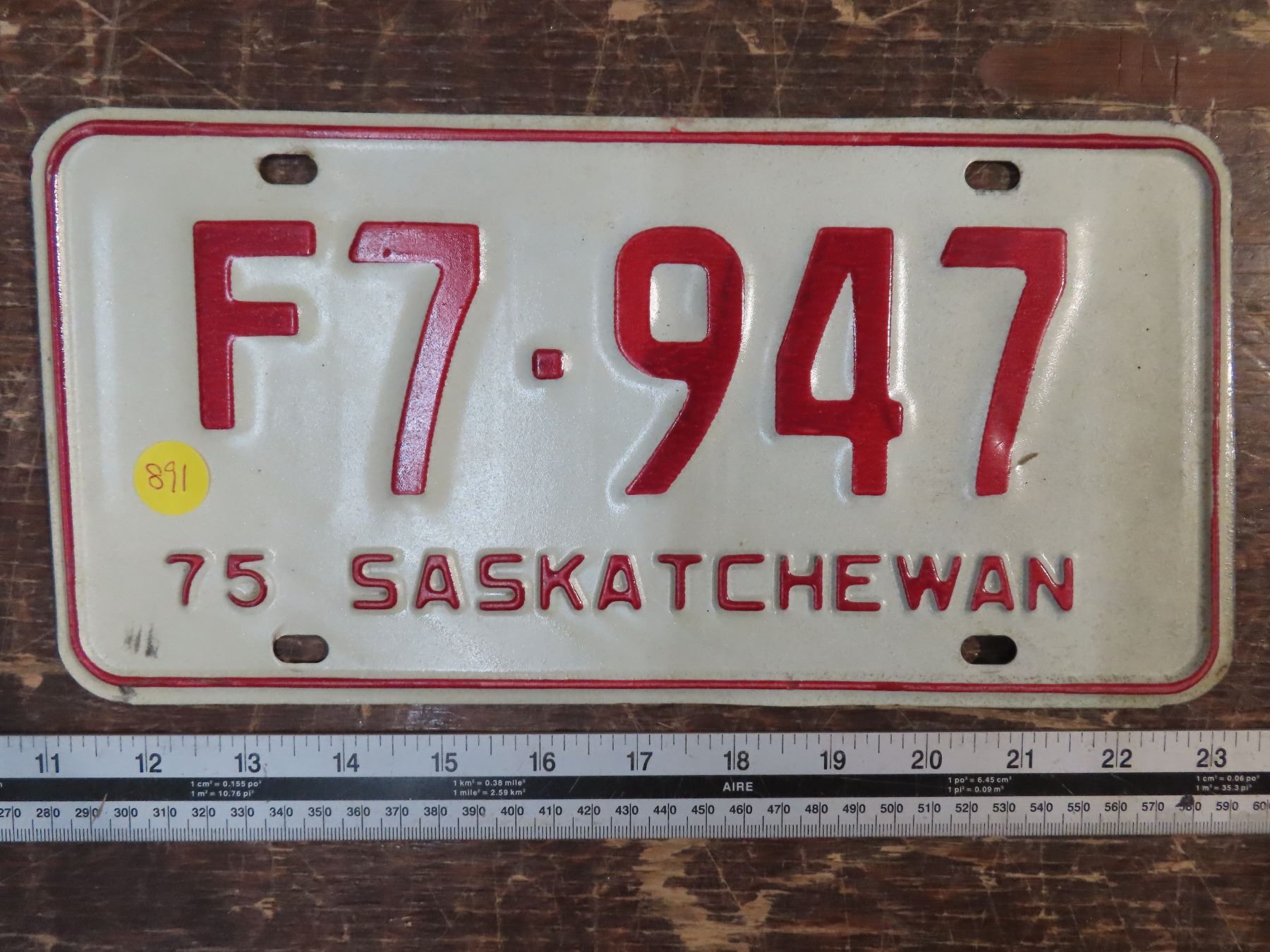 1975 Sask. Lic. Plate F7-947