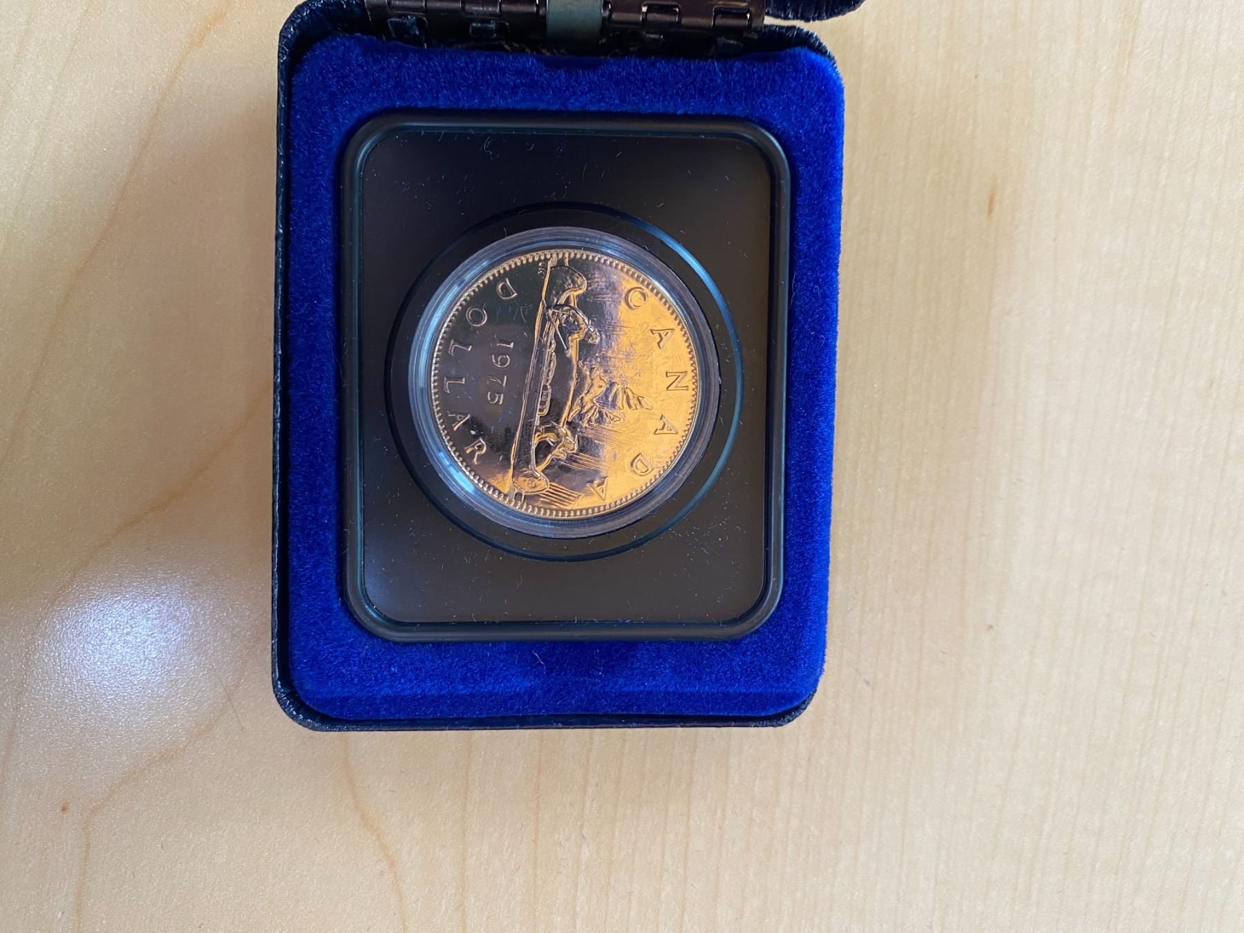 1975 Specimen Dollar. Housed in its original blue leatherette case. Specimen.