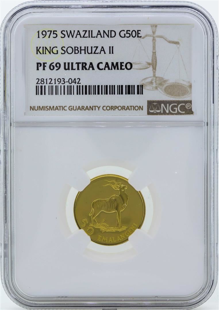 1975 Swaziland 50 Emalangeni Proof Gold Coin NGC PF69 Ultra Cameo