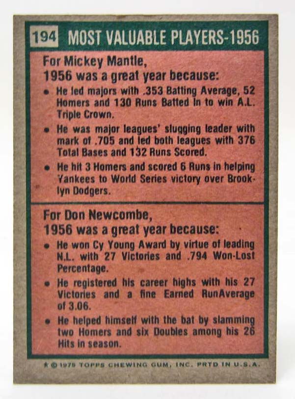 1956 MVPs, American League - Mickey Mantle, National League - Don Newcombe