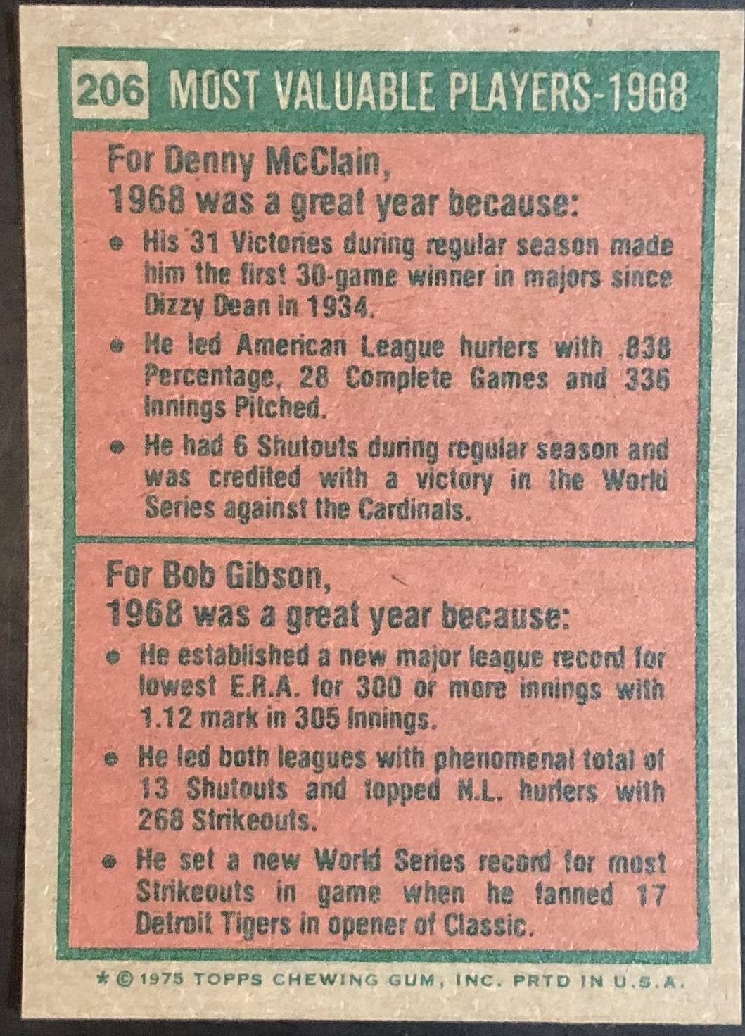 Card #206 MLB, baseball, vintage, hall of fame