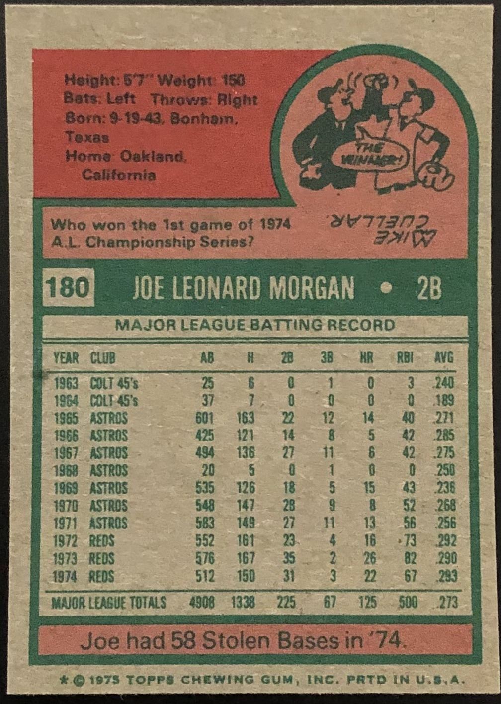 Card #180 MLB, baseball, vintage, hall of fame
