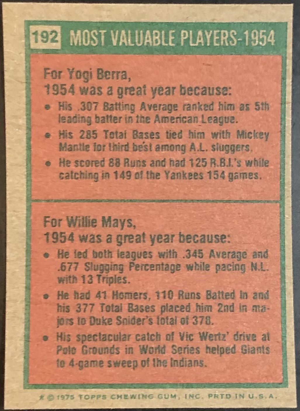 Card #192 MLB, baseball, vintage, hall of fame