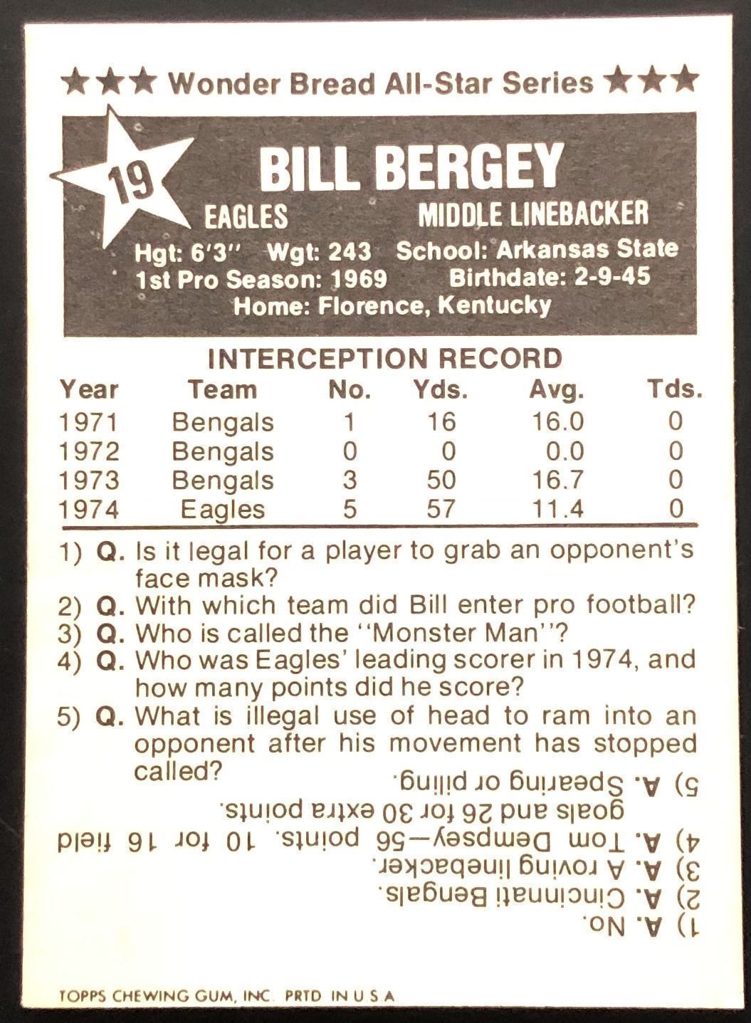 Card #19 NFL, football, vintage, regional