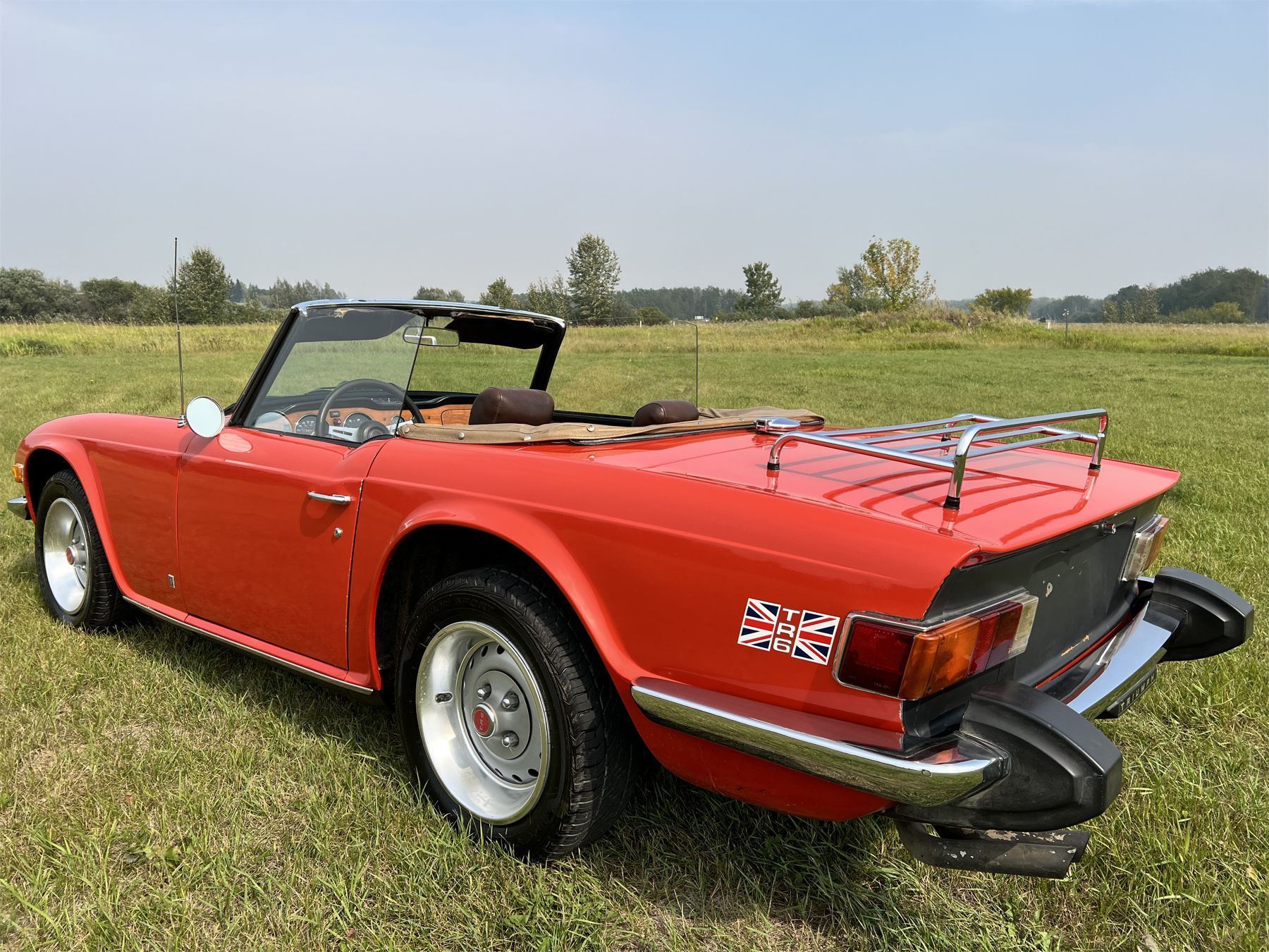 Introducing the timeless classic, the 1975 Triumph TR6, a British icon that has stood the test of time and continues to captivate automotive enthusiasts worldwide. This beauty represents the pinnacle of vintage sports car design, with its sleek lines and that distinctive front grille that oozes charisma. Beneath the hood lies a robust inline-six engine, delivering a symphony of power and a driving experience that's as exhilarating today as it was in the '70s. The interior, adorned with supple leather and wood accents, exudes a sense of nostalgia and craftsmanship. Whether you're a collector or an enthusiast, this TR6 is a must-have addition to your stable of classics. Join the legacy, bid now, and make this 1975 Triumph TR6 a cherished part of your automotive heritage.