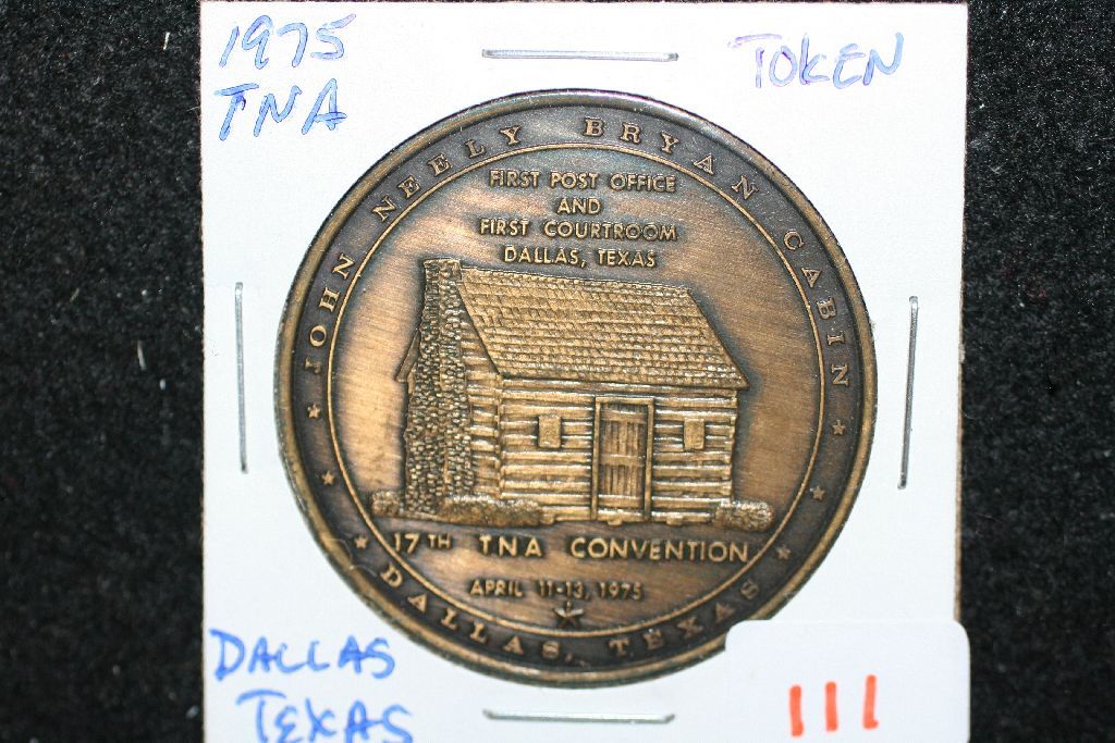 1975 Texas Numismatic Assoc. Convention Token; John Neely Bryan Cabin Dallas TX
