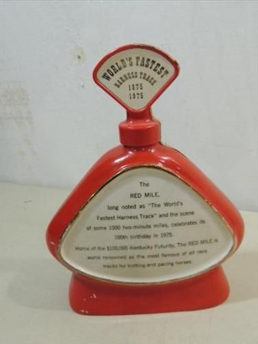 1975 VINTAGE JIM BEAM WHISKEY CERAMIC DECANTER: 100TH ANNIVERSARY THE RED MILE GREYHOUND.  AS SHOWN.  VIEW PICTURE FOR DETAIL.