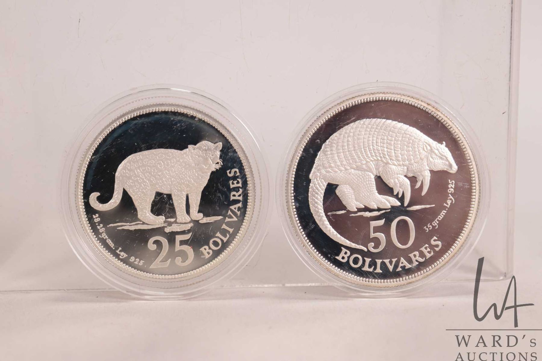 1975 Venezuela, two .925 silver coins including 25 bolivares and 50 bolivares. (63.28 grams of .925
