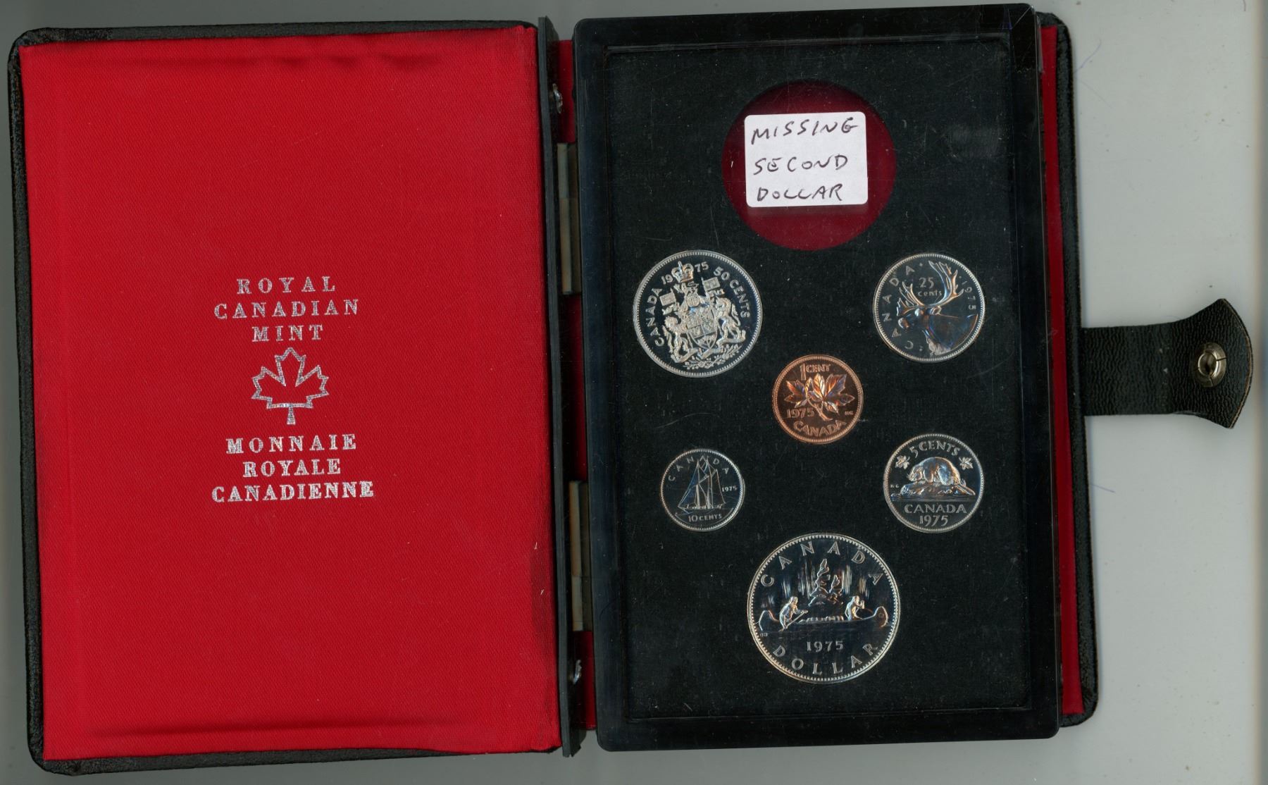 1975- missing second dollar in black leather holder