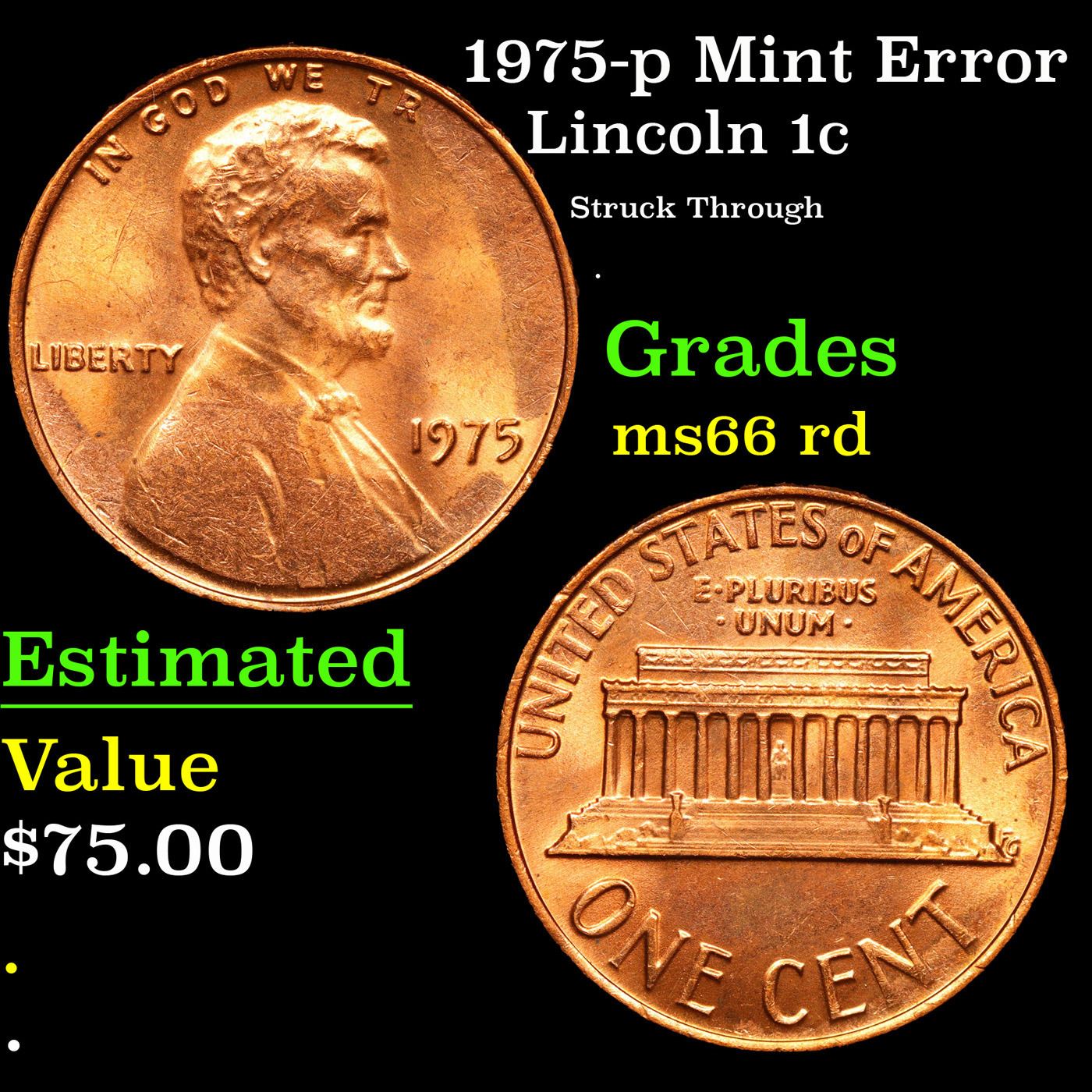 1975-p Mint Error Lincoln Cent 1c Grades GEM+ Unc RD.