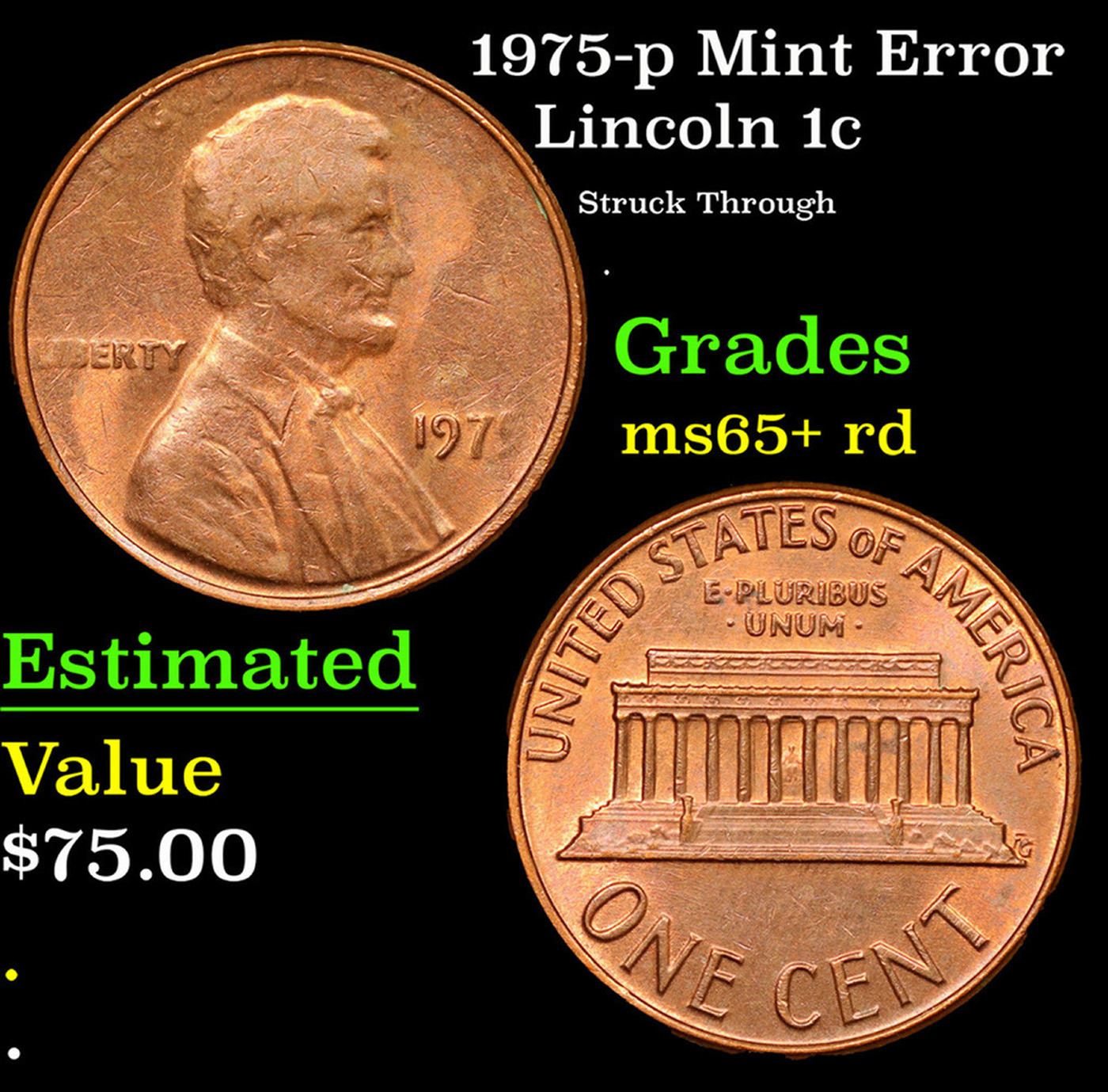 1975-p Mint Error Lincoln Cent 1c Grades Gem+ Unc RD.