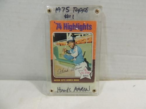 1975 tOPPS #1 BASEBALL PLAYER CARD HANK AARON. AS SHOWN. VIEW PICTURE FOR DETAIL.