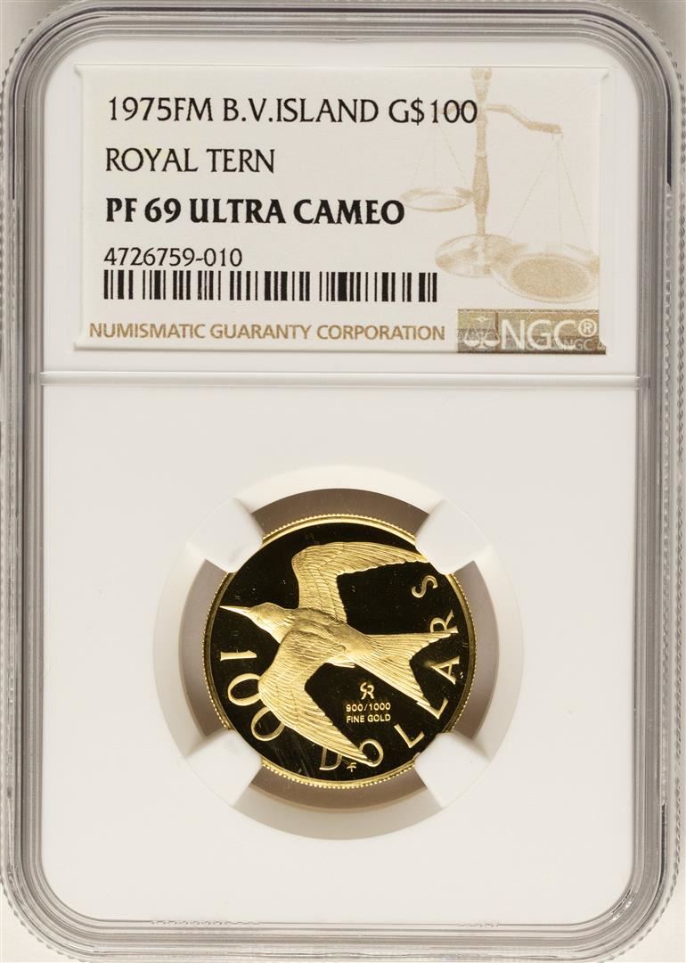 One 1975FM B.V. Island $100 Royal Tern Gold Coin NGC PF69 Ultra Cameo. NGC Certified.