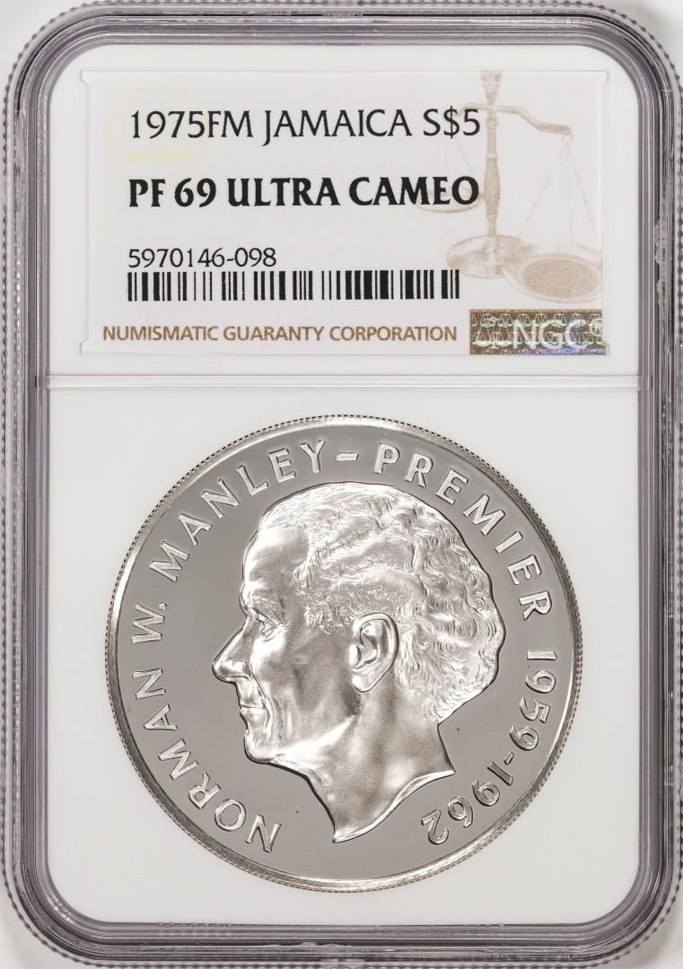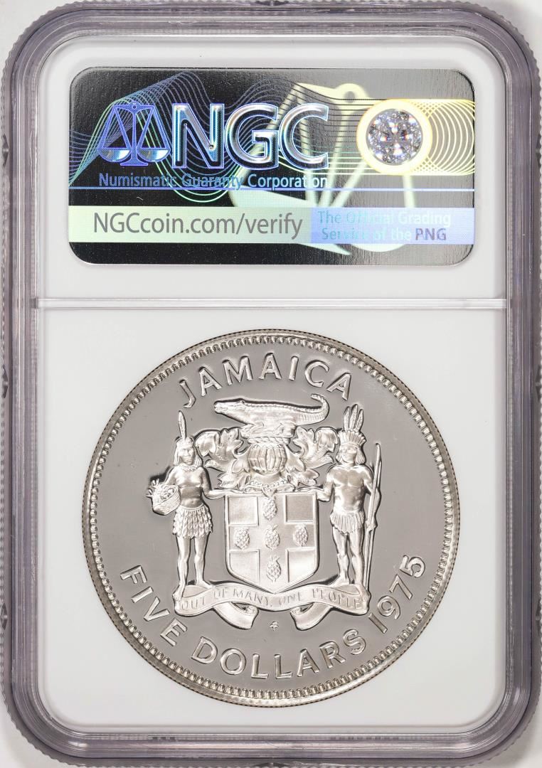One 1975FM Jamaica $5 Proof Silver Coin NGC PF69 Ultra Cameo. NGC Certified.