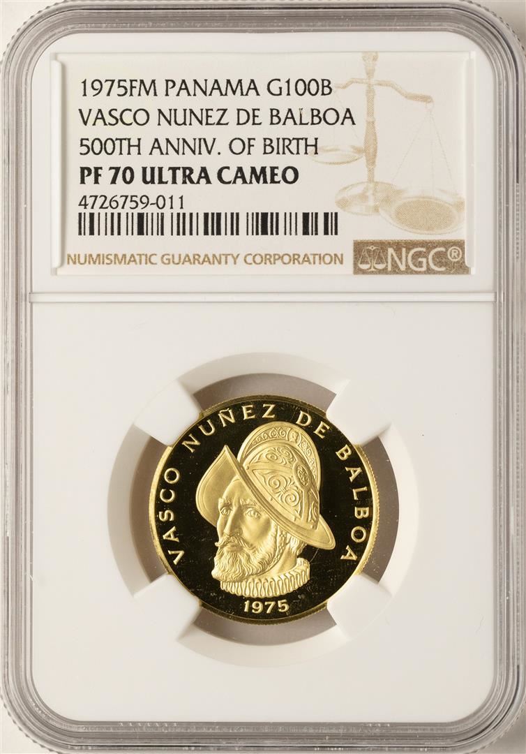 One 1975FM Panama 100 Balboas Gold Coin NGC PF70 Ultra Cameo. NGC Certified.